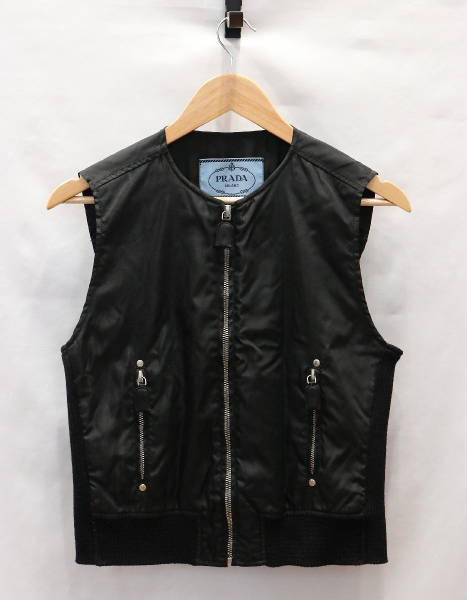 | PRADA プラダ ジャケット ベスト ジャケット ジップアップ ナイロン ウール ブラック 黒 サイズL トップス | ||