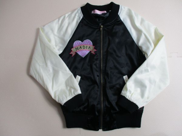 | BG828【NADIA・ナディア】ロゴ刺繍 裏地付き スタジャン 女児 白・黒 150? | ||