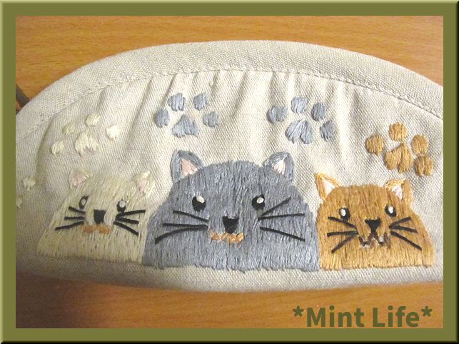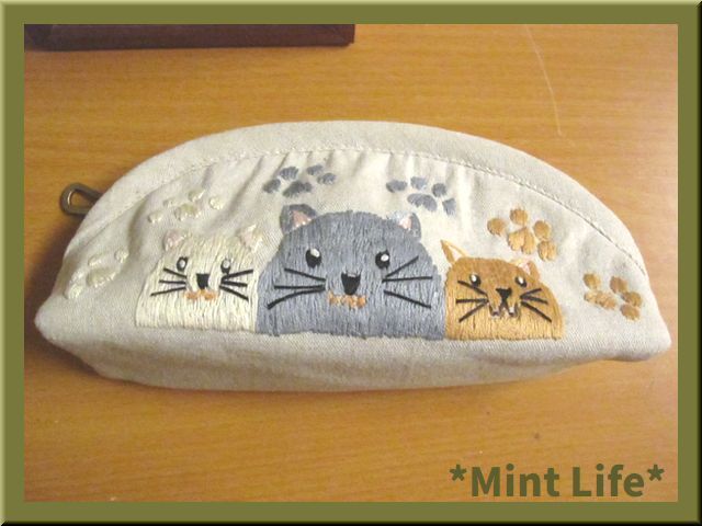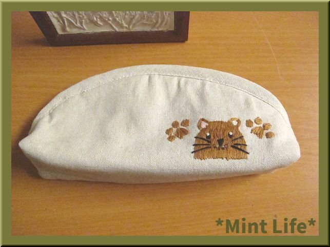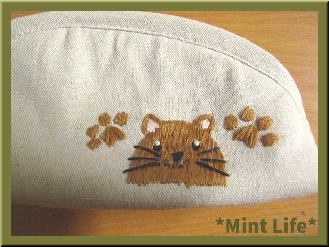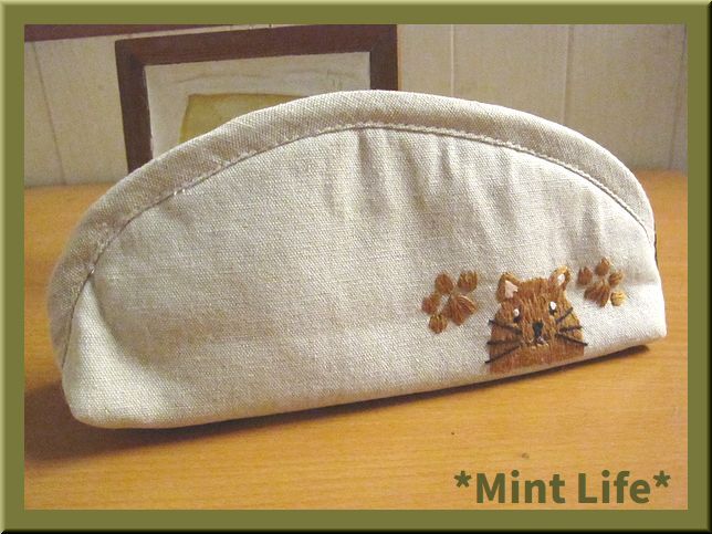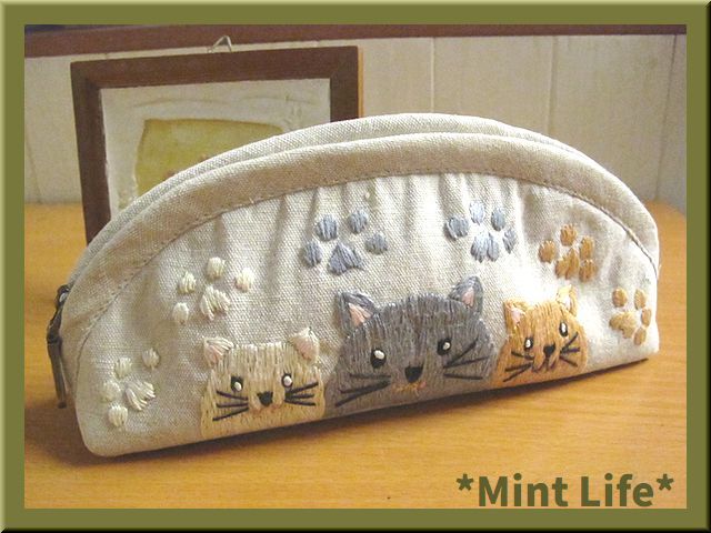 | *商品詳細* 商品名: *Mint Life* ハンドメイド 「リネンポーチ」 手刺しゅう 使用生地: リネン 95%&コットン5%混生地(生成) 内布: コットン生地(青色ギンガムチェック) サイズ: 幅: 約21㎝ (底部分で) 高さ: 9㎝(中央で) マチ: 約5.5㎝ 重さ: 約57 g(梱包前) (採寸の誤差はご了承ください。) *形の説明* マチありのファスナー開きのかまぼこ型「ポーチ」です。 内布には「ポケット」が1か所ございます。 「ペンケース」や「メガネケース」やその他お使いいただけます。 ポーチ口は、25㎝のファスナーを使用しました。 刺しゅうは、猫ちゃんたちと肉球を刺しています。(前後とも) 表生地裏には、「接着芯」&「キルト芯」を貼り、内布裏にも「接着芯」を貼っています。 | ||||