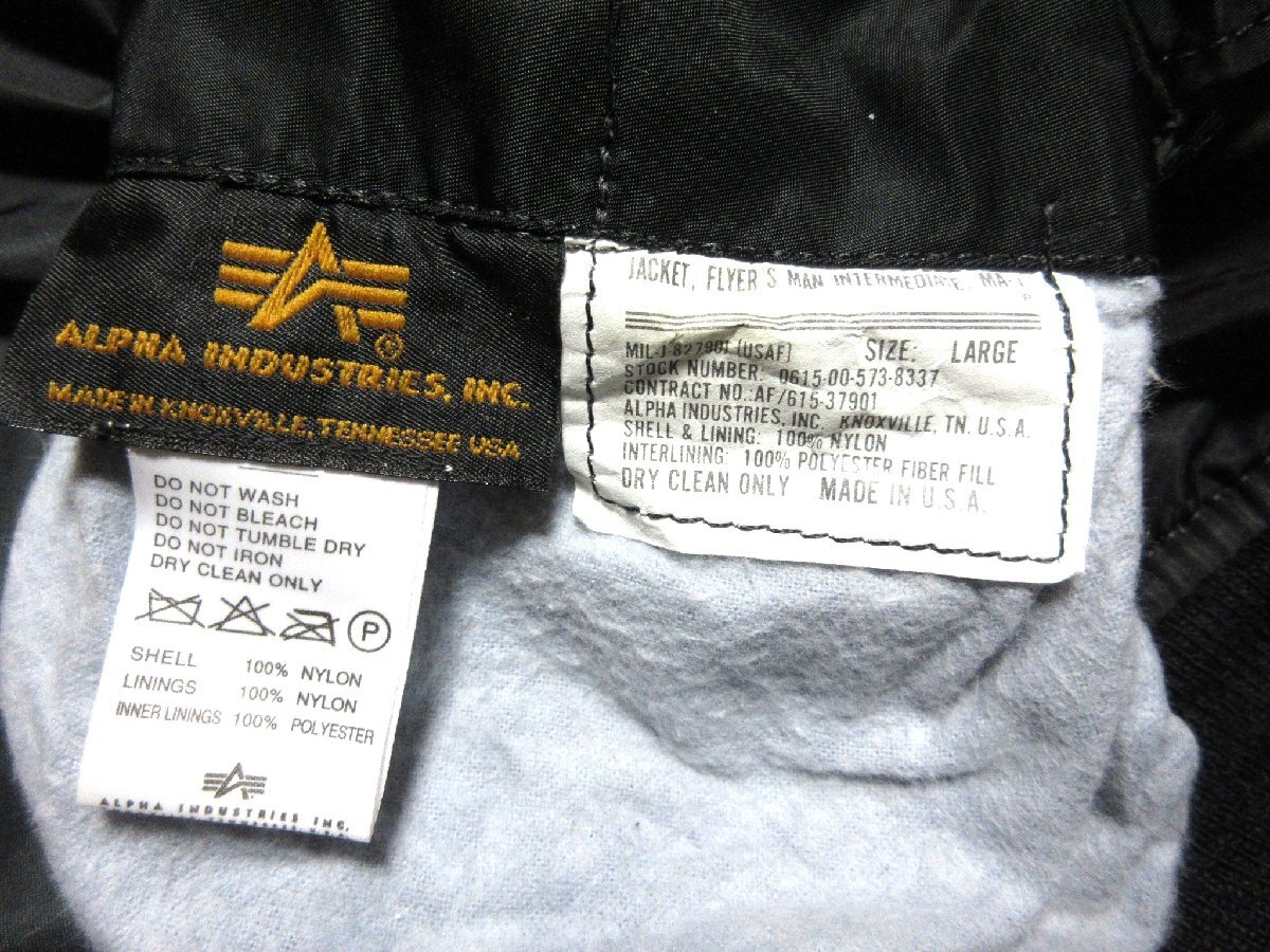 ALPHA INDUSTRIES, INC TYPE MA-1 MIL-J-82790J アルファ MA-1 フライトジャケット/LARGE/ブラック/レプリカ/USA/アメリカ/米国製