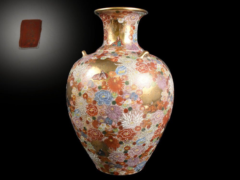 | 商品名 | 【雲】某資産家買取品 豪華絢爛 薩摩 金襴手百花繚乱耳付花瓶 飾壷 高さ41cm 丸十字島津家家紋 古美術品(花詰花器花入)DJ911 DThkj3j1 |