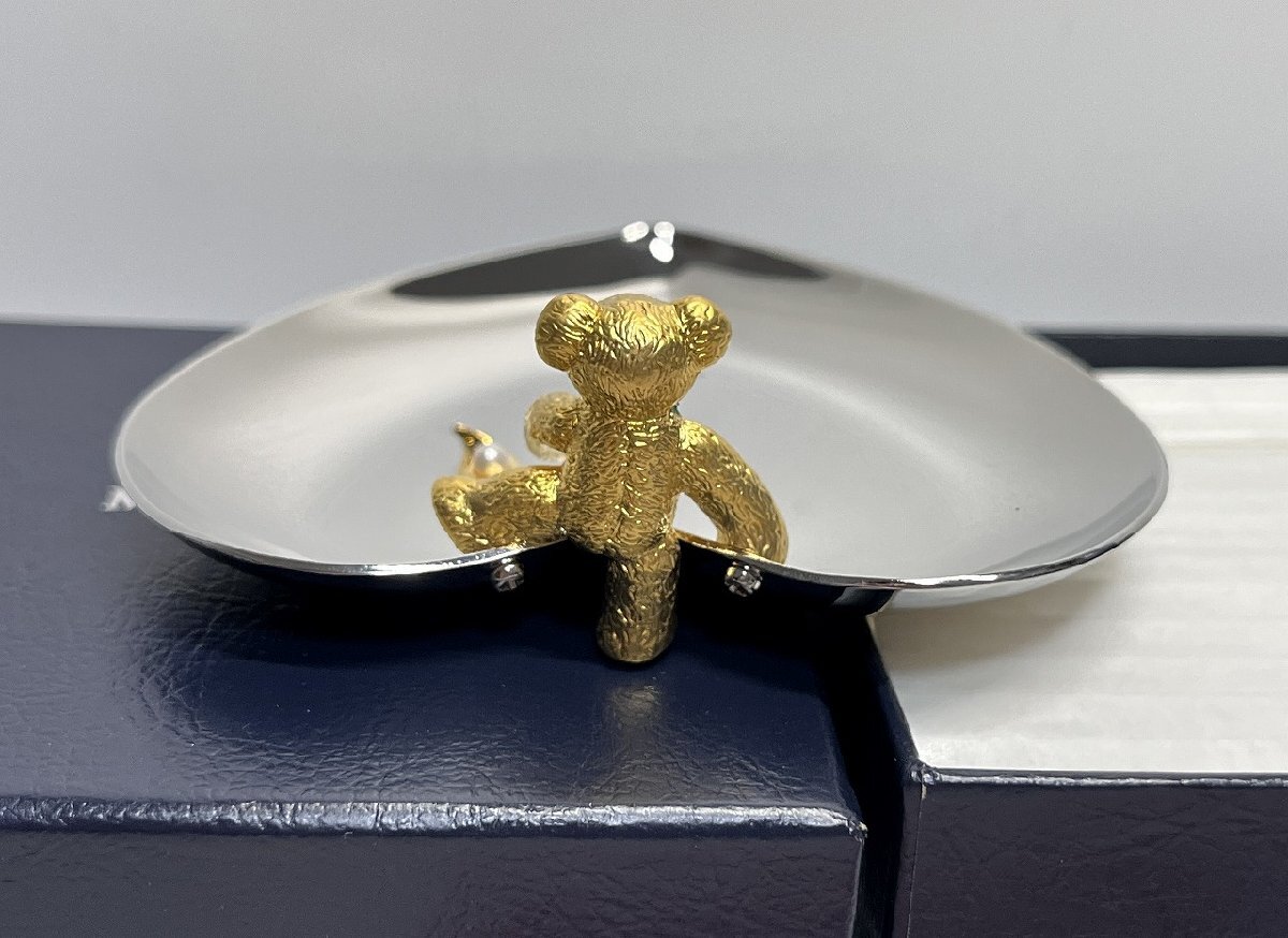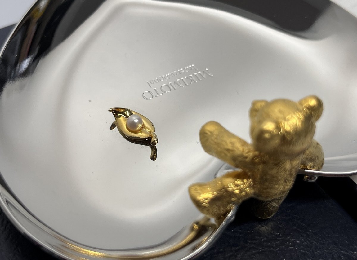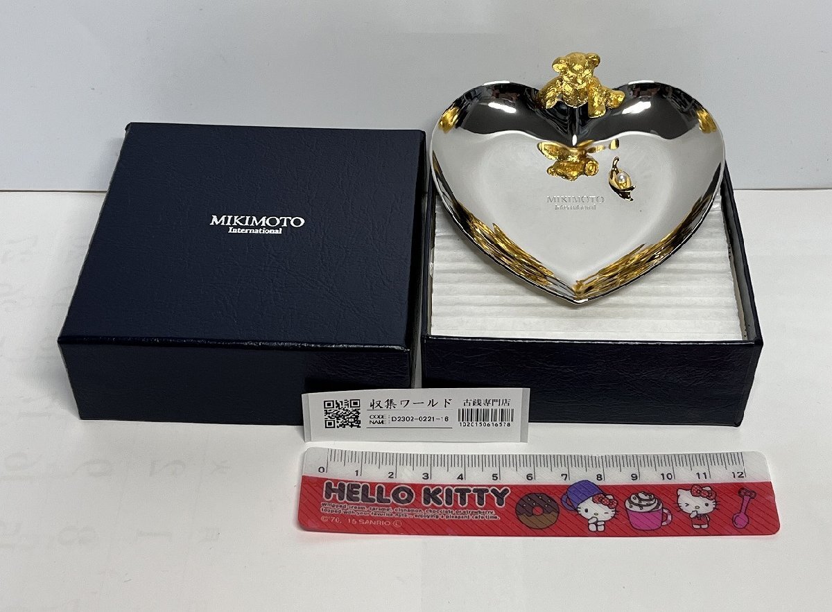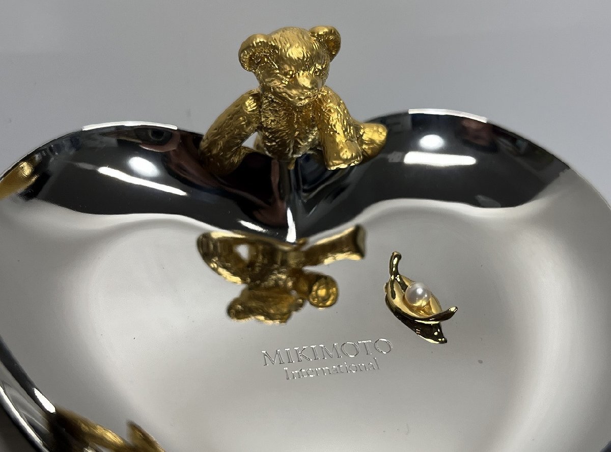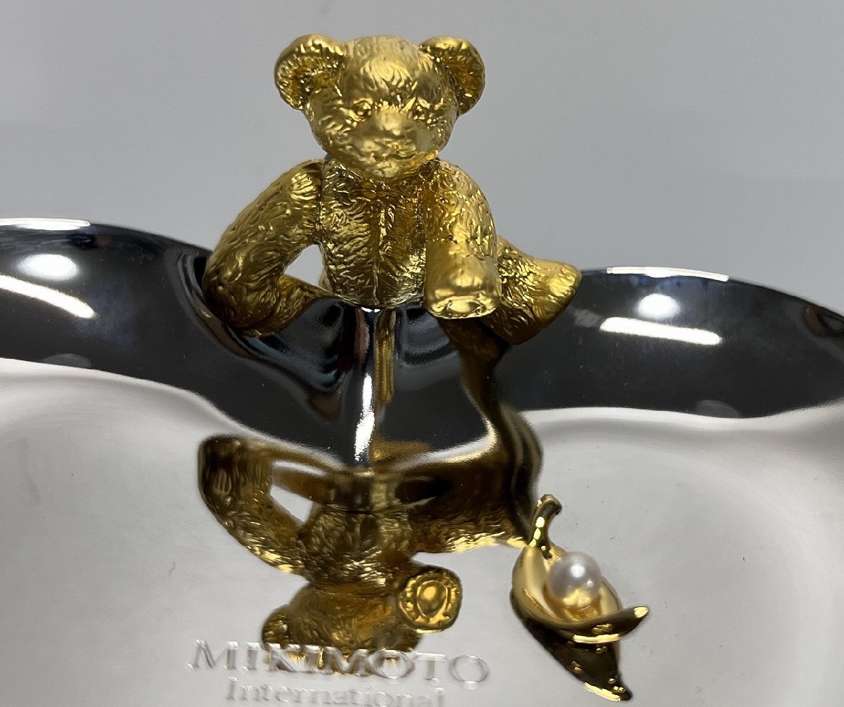 MIKIMOTO/ミキモト 装飾トレイ/小物トレイ ハート型 熊/真珠&箱付-極美品-D2210