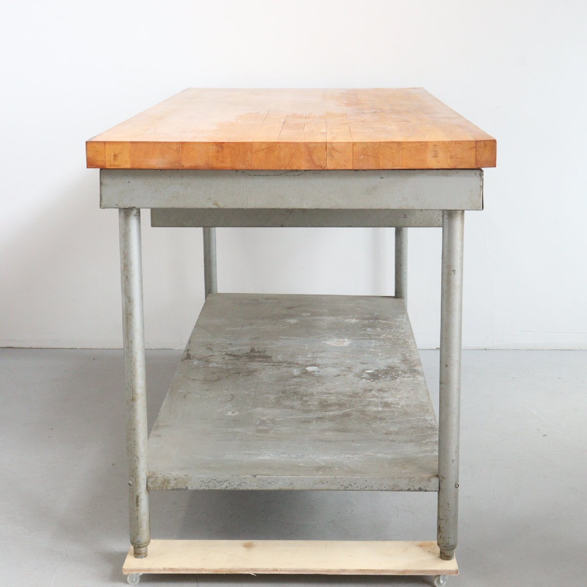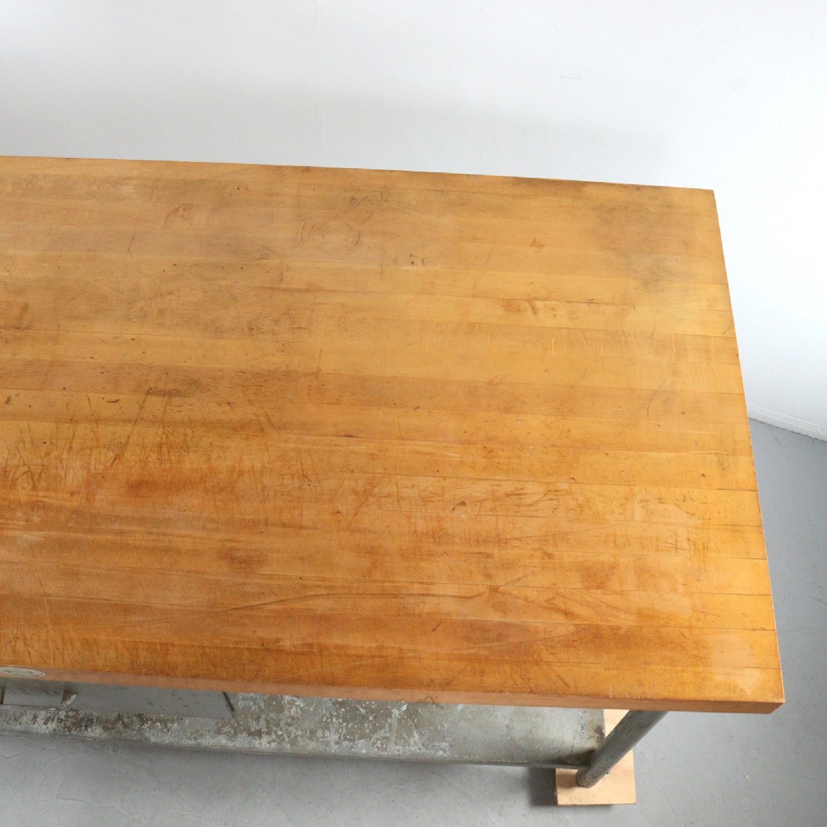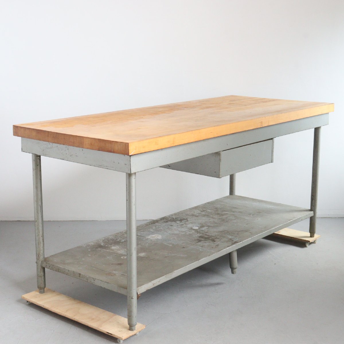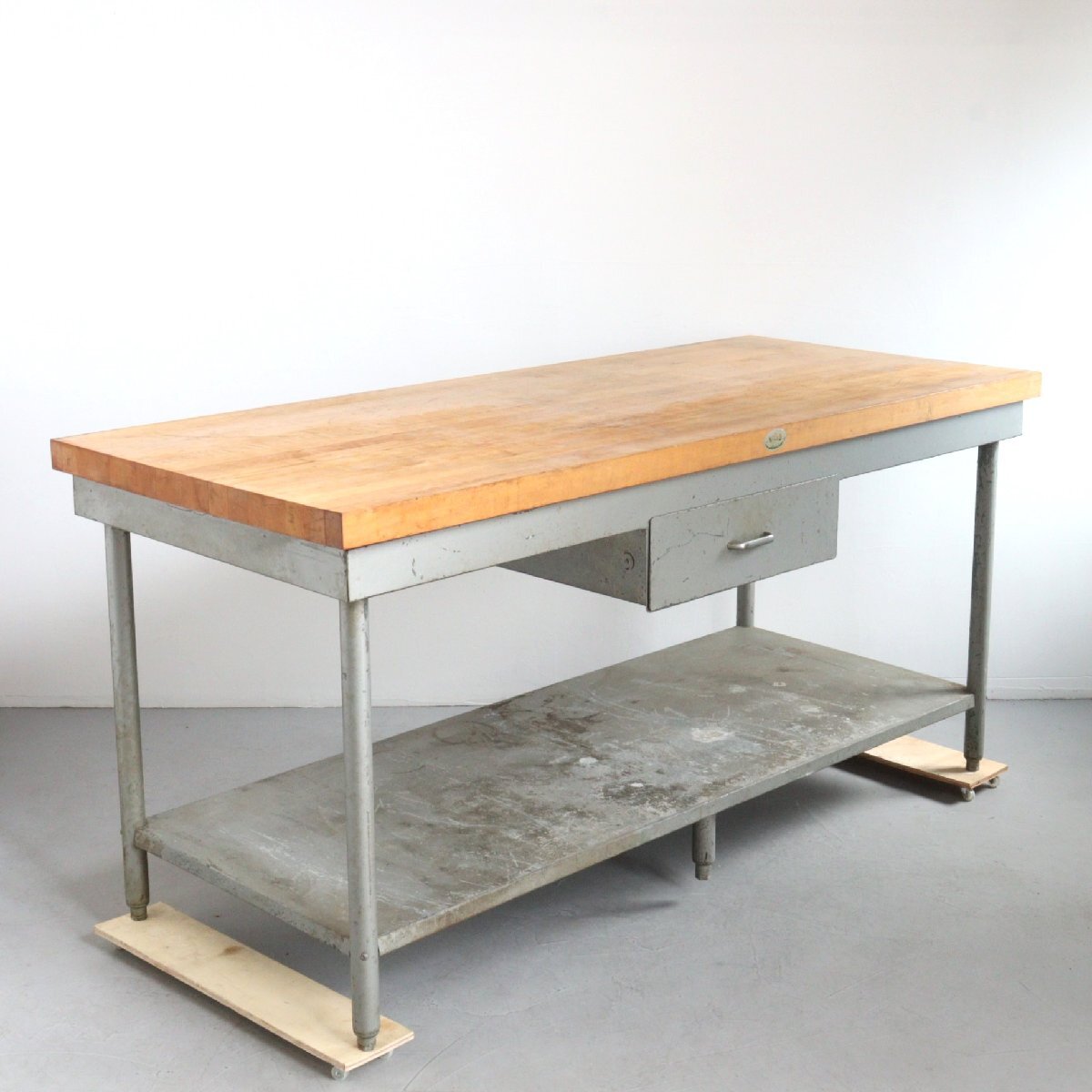 | 商品説明 explanation | アメリカで使用されていた、ヴィンテージの作業台です。 天板は1881年創業の老舗木材メーカー「Michigan Maple Block」社の天板が使用されています。 経年によってヴィンテージらしさのある雰囲気で存在感抜群です。 ガレージや店舗のディスプレイなどにいかがでしょうか。 ※台車にのせた状態で撮影しています。 |