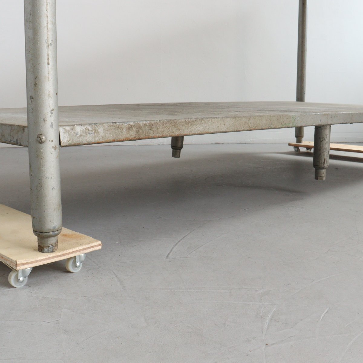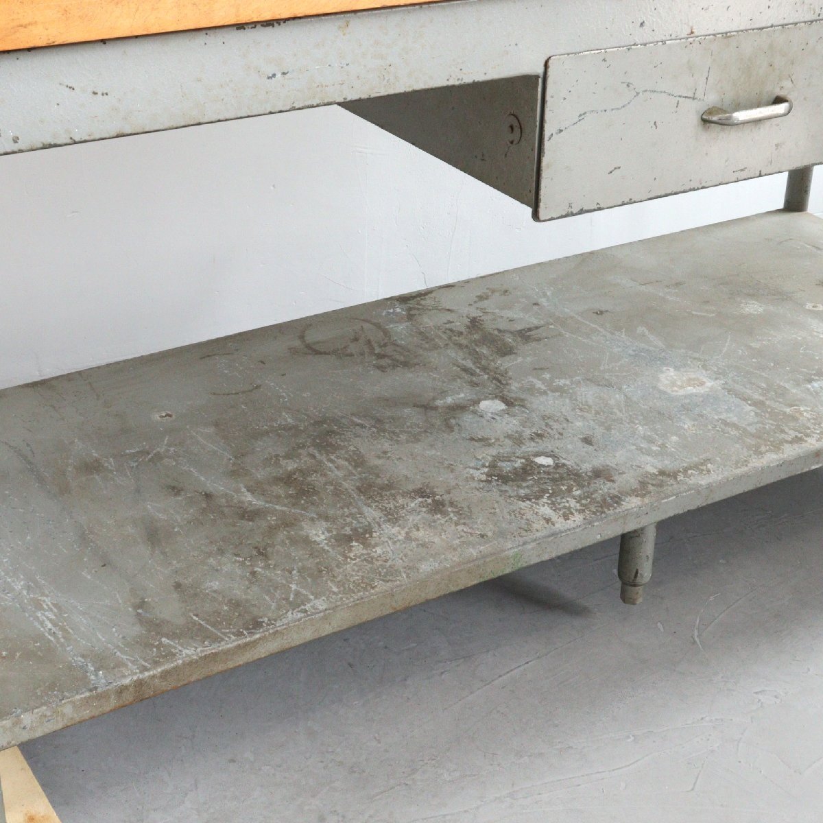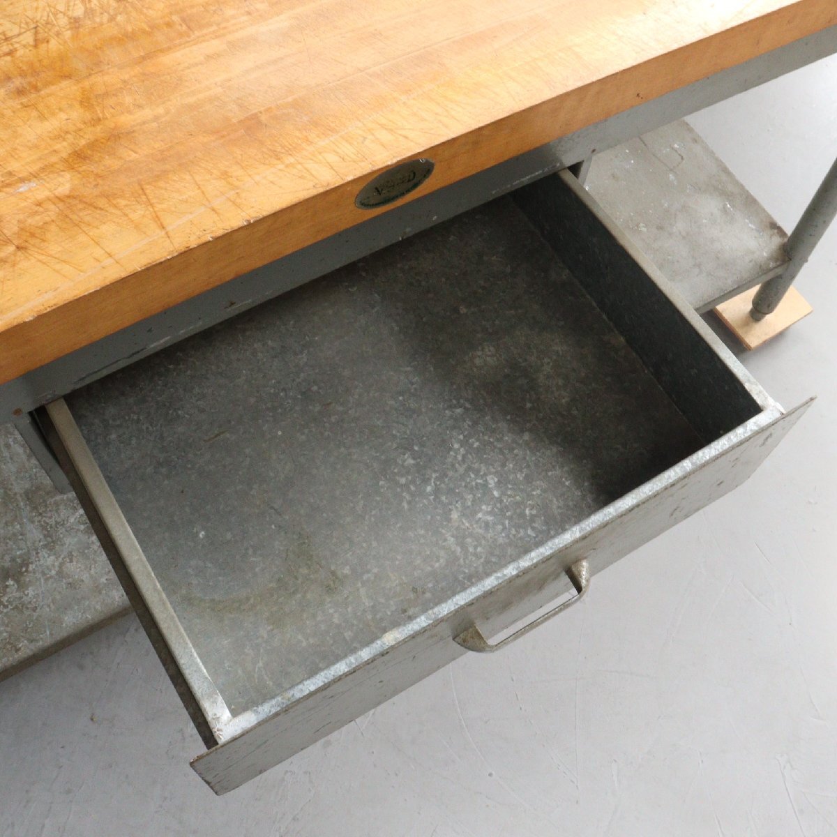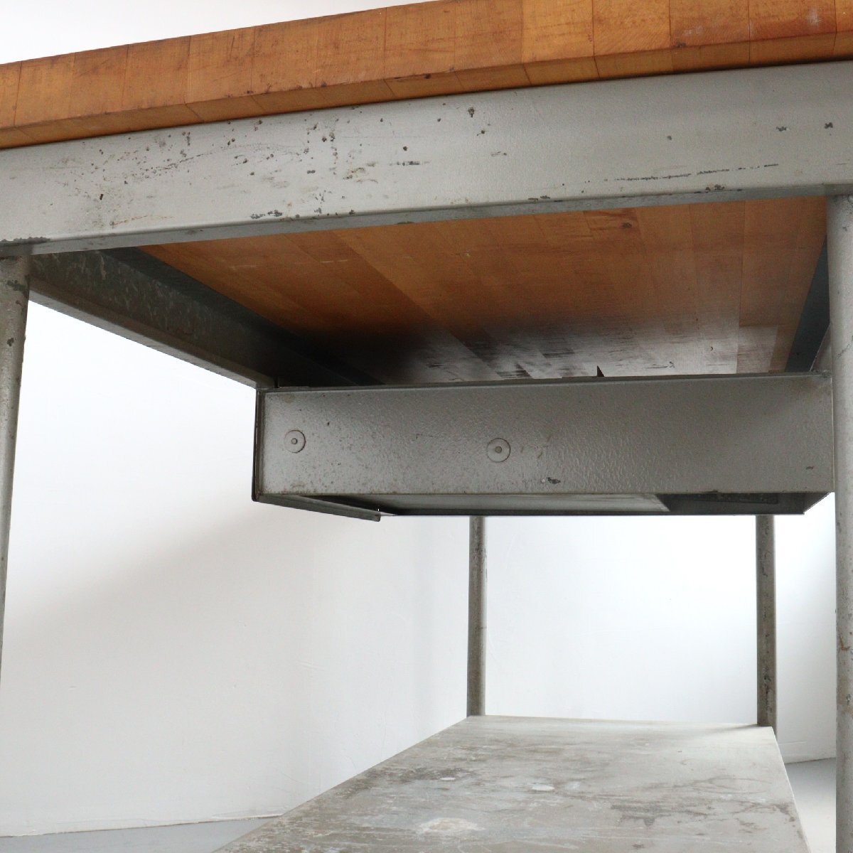 | 商品説明 explanation | アメリカで使用されていた、ヴィンテージの作業台です。 天板は1881年創業の老舗木材メーカー「Michigan Maple Block」社の天板が使用されています。 経年によってヴィンテージらしさのある雰囲気で存在感抜群です。 ガレージや店舗のディスプレイなどにいかがでしょうか。 ※台車にのせた状態で撮影しています。 |