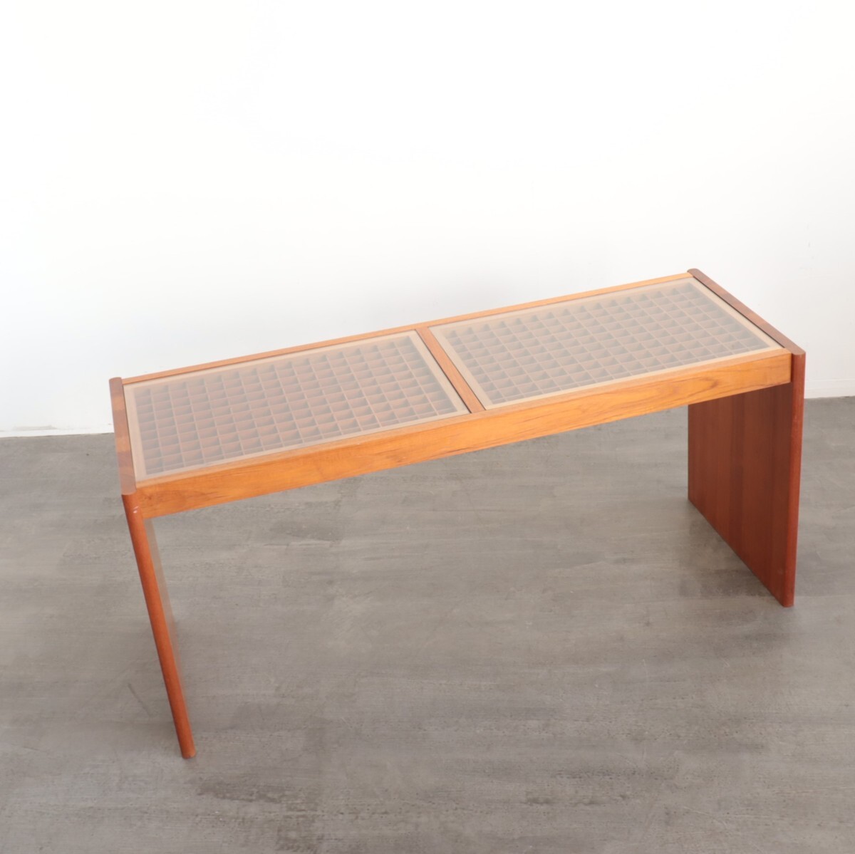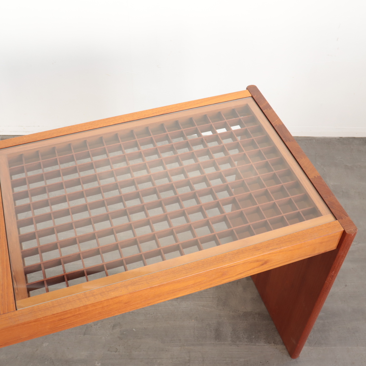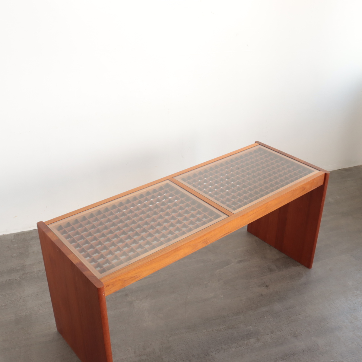 | 商品説明 explanation | アメリカで買い付けた、1950年~1960年代頃のサイドテーブル(飾り台)です。 天板は木製の格子にガラスが乗っており、ミッドセンチュリーらしい良い雰囲気があります。 経年による風合いが良く、ランプや植物などの陳列にピッタリです。 店舗什器やご自宅でいかがでしょうか。 |