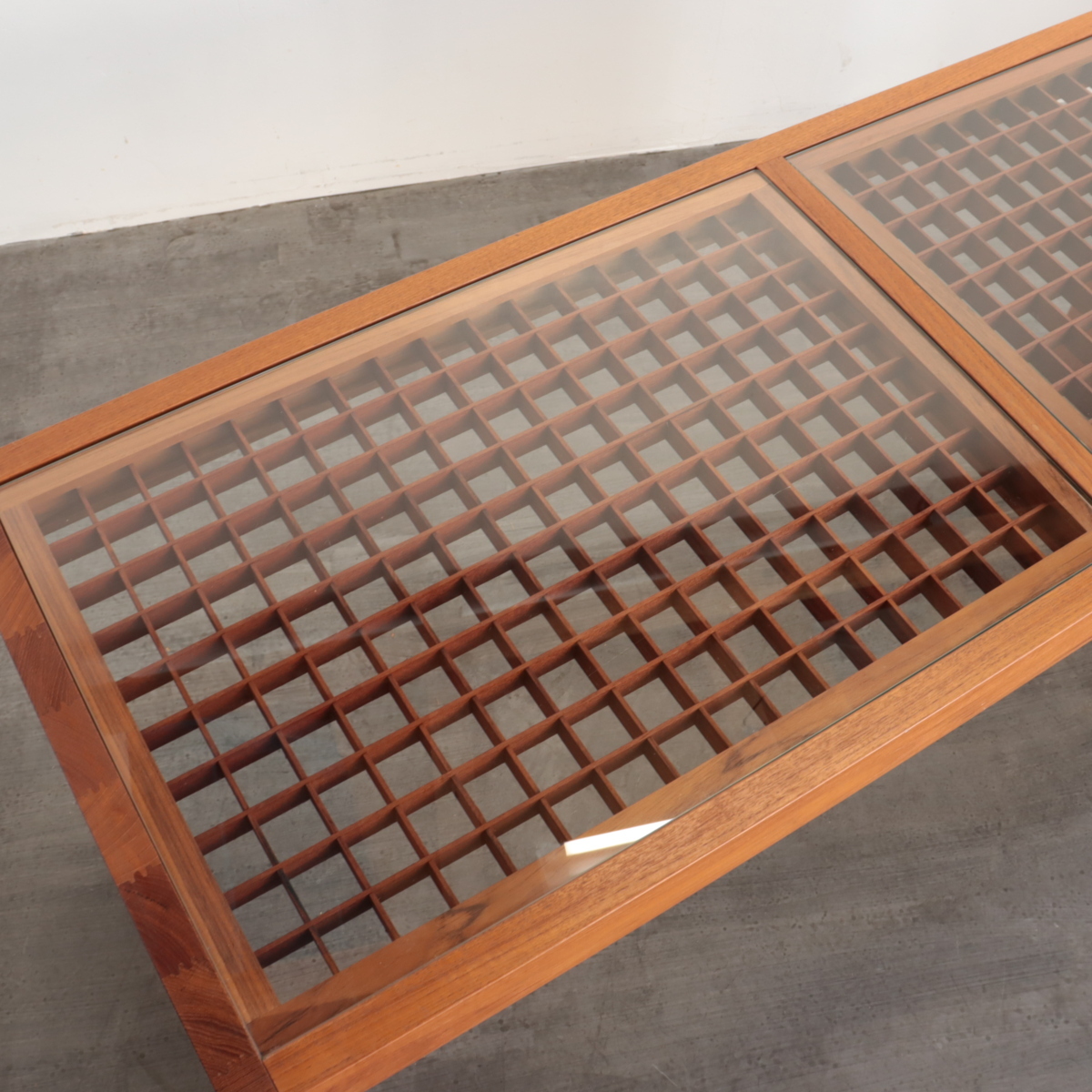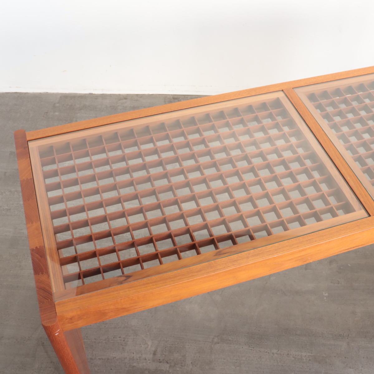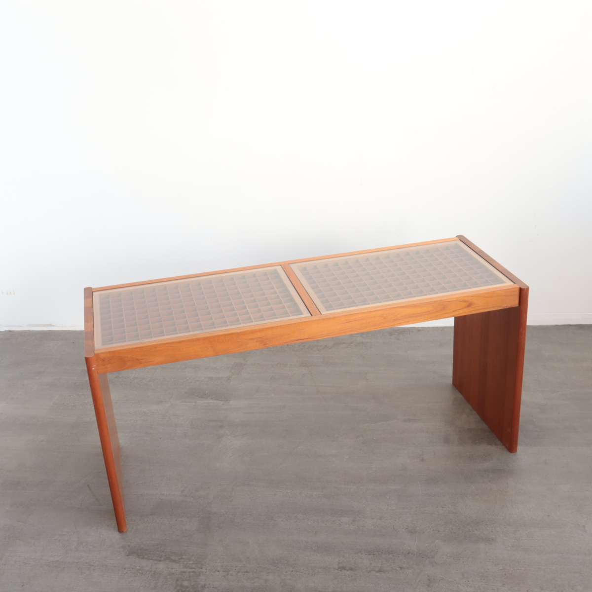| 商品説明 explanation | アメリカで買い付けた、1950年~1960年代頃のサイドテーブル(飾り台)です。 天板は木製の格子にガラスが乗っており、ミッドセンチュリーらしい良い雰囲気があります。 経年による風合いが良く、ランプや植物などの陳列にピッタリです。 店舗什器やご自宅でいかがでしょうか。 |