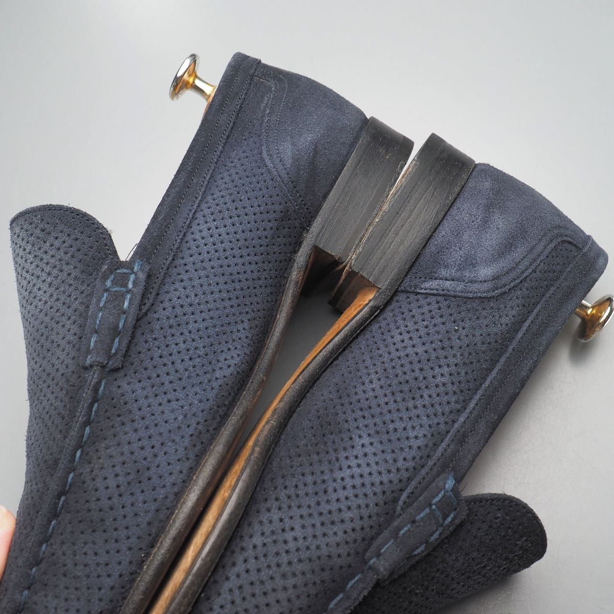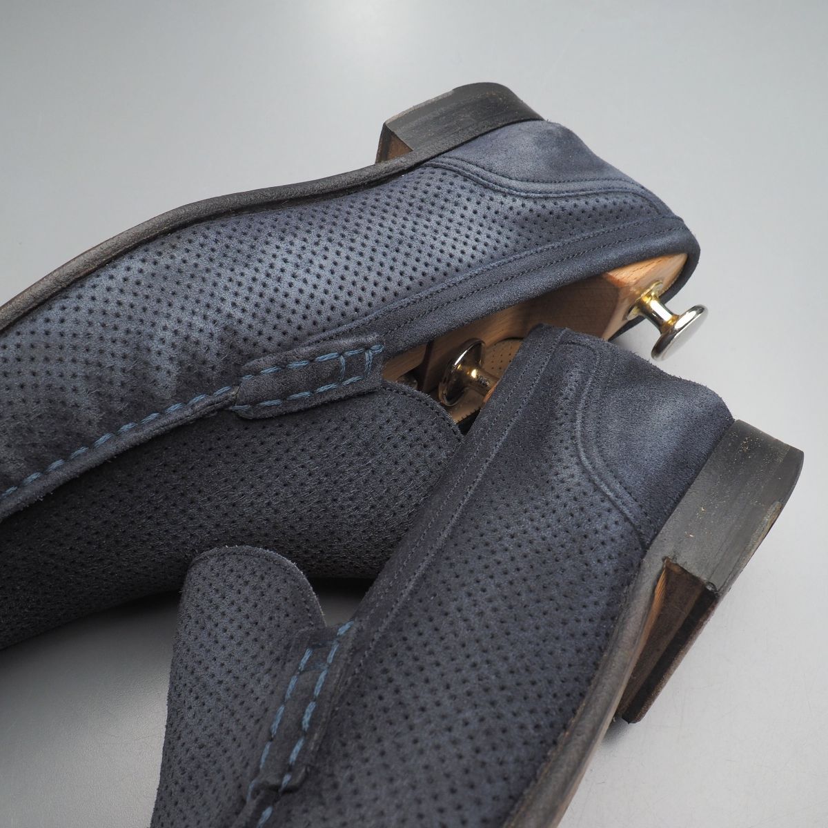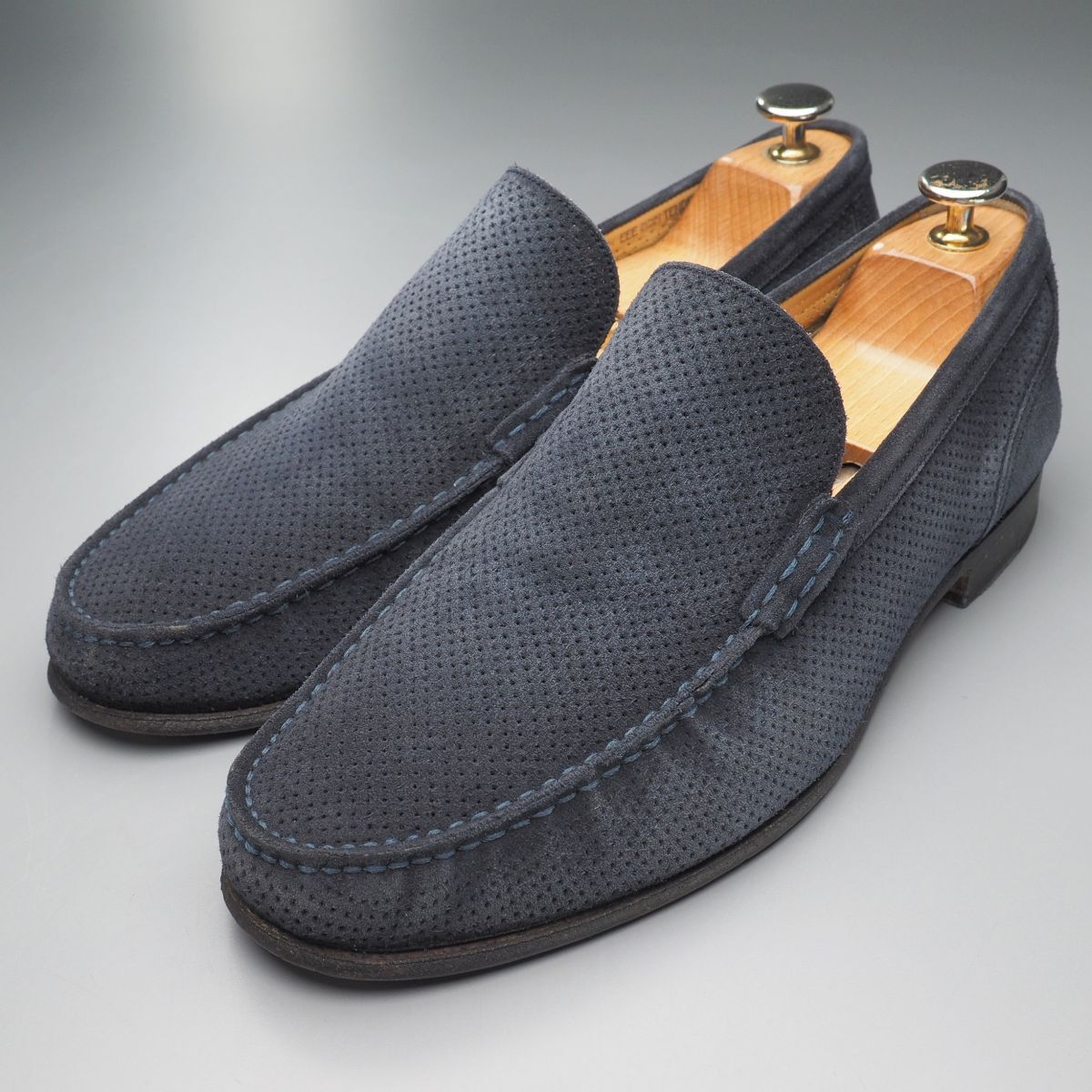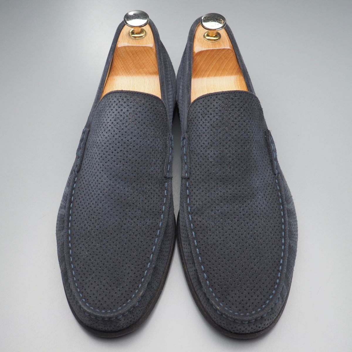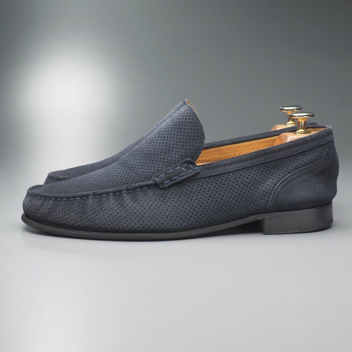 | MI2314//スイス製*バリー/BALLY*メンズEU6.5F/US7.5EEE/パンチングスウェード/ヴァンプローファー/レザースリッポン/革靴/紺/ネイビー | |||