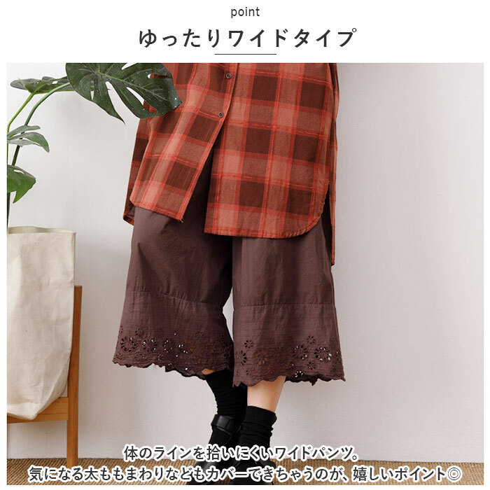 | 商品説明 | ・・ストレスフリーな履き心地♪軽やかなペチパンツが新登場。 ・【ゆったりワイドタイプ】 ・体のラインを拾いにくいワイドパンツ。気になる太ももまわりなどもカバーできちゃうのが、嬉しいポイント◎ ・【締めつけ感なく履ける!】 ・伸縮性のあるウエストゴム仕様で、自分サイズにフィット。着脱もラクチン。 ・【大人可愛いデザイン】 ・ナチュラルな風合いのコットン生地に、裾元の型抜きデザインがアクセント。 ・【便利なポケット付き】 ・左右に配置されたポケットには、スマホや薄手のハンカチをIN。 ・【楽しくレイヤードコーデ】 ・丈の長いトップスと合わせたり、ロングワンピースの下に忍ばせてコーディネート♪透け感をおしゃれにガード! |