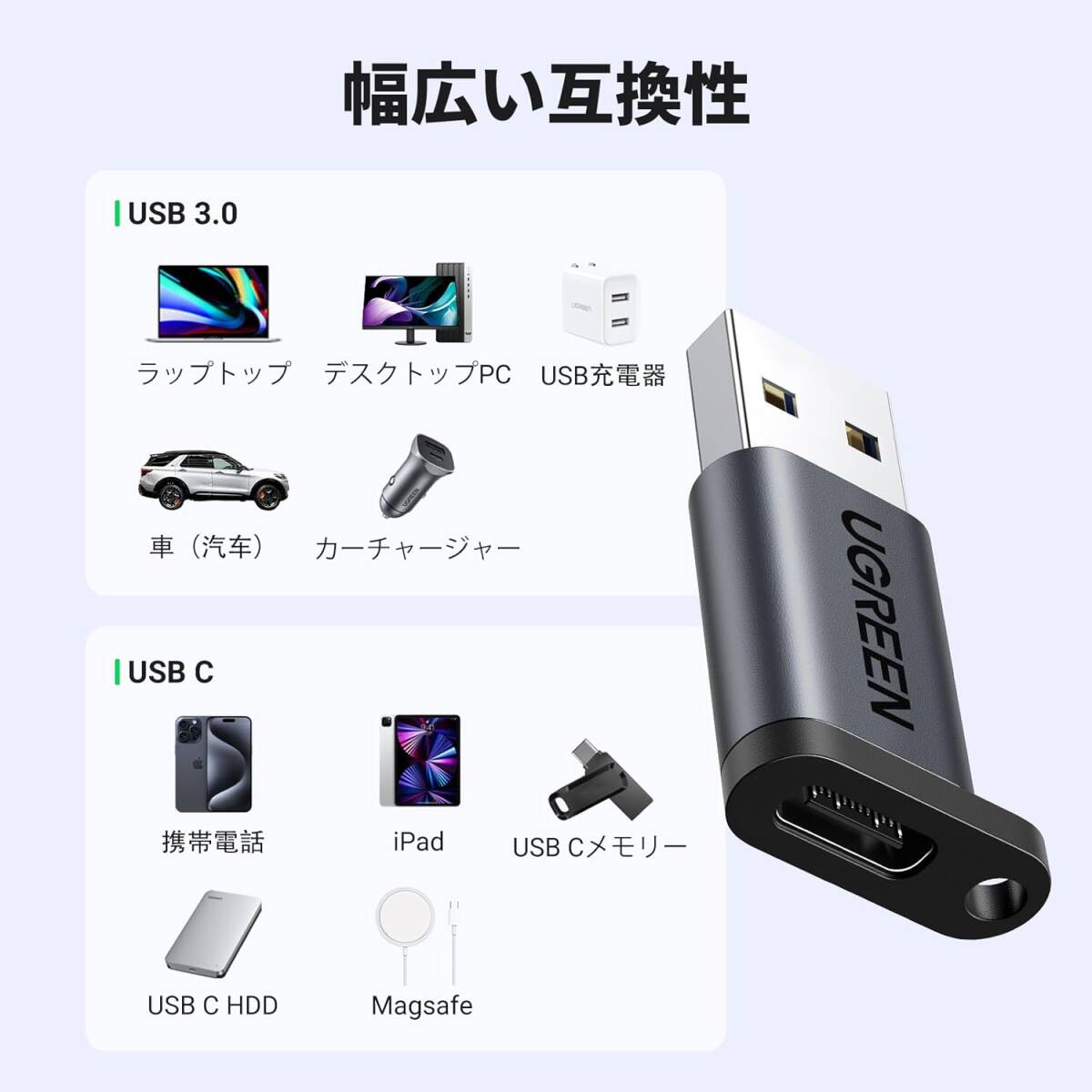 幅広い互換性:USB-C USB-A 変換アダプターにより、ケーブル/ハブ/ USBスティック/ハードドライブ/カードリーダー/イーサネットアダプターなどのUSB Cポートを備えたデバイスを使用してUSBーAラップトップおよびデスクトップまたはUSB充電器に接続できます。
