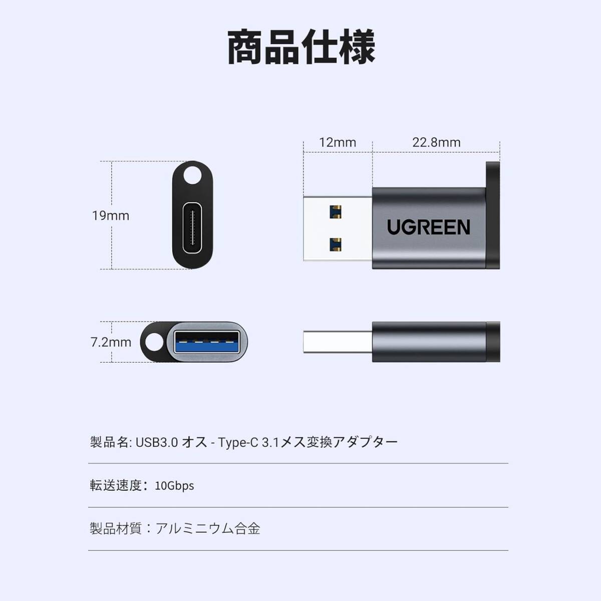 UGREEN USB Type-C 変換アダプタ USB 3.1 Type C メス to USB 3.0 オス 変換 10Gbps QC3.0 急速充電と高速データ転送同期 Windows 10 / Mac OS対応 MacBook iPad Pro iPhone 13/12/11 Pro Maxなどに対応 紛失防止ストラップ付き ブラック