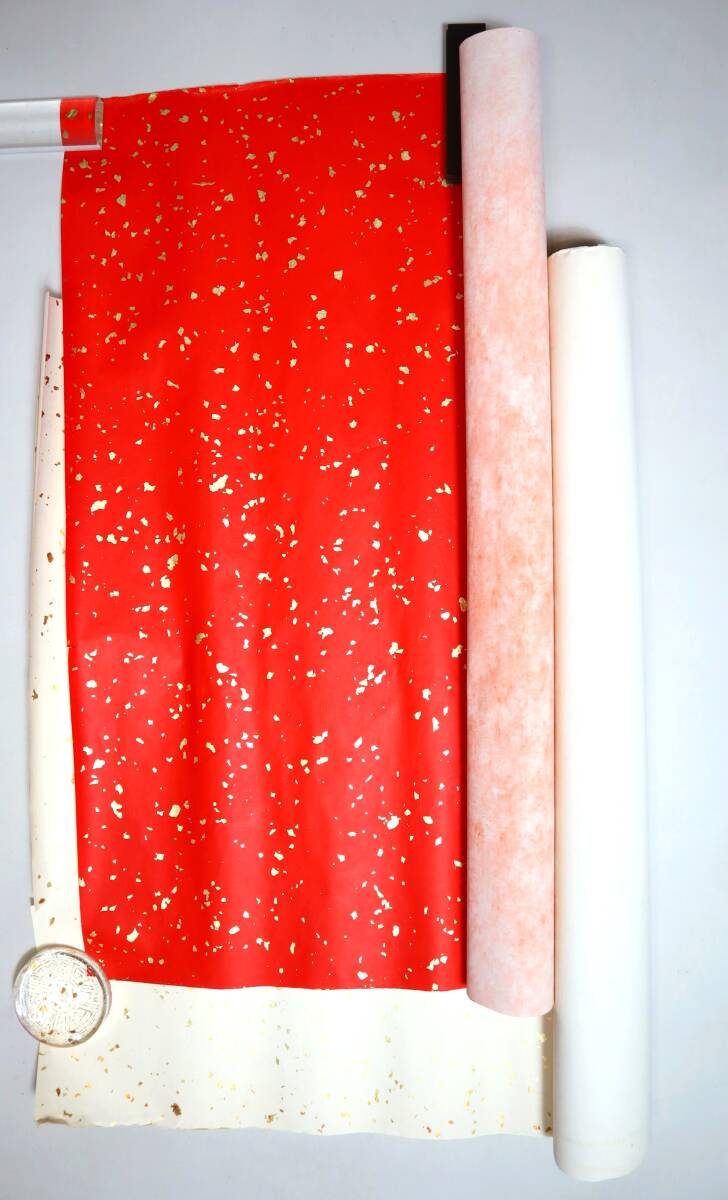 書道 紙 中国金箋紙2巻 白色片金(四尺・15枚)・朱冷金箋(73×146・7枚)◇◇商品をご覧頂きありがとうございます。◇◇