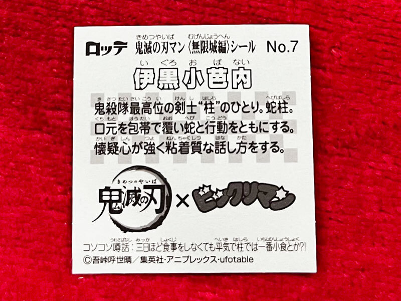 | アイテム | 伊黒小芭内 7 ビックリマン シール |