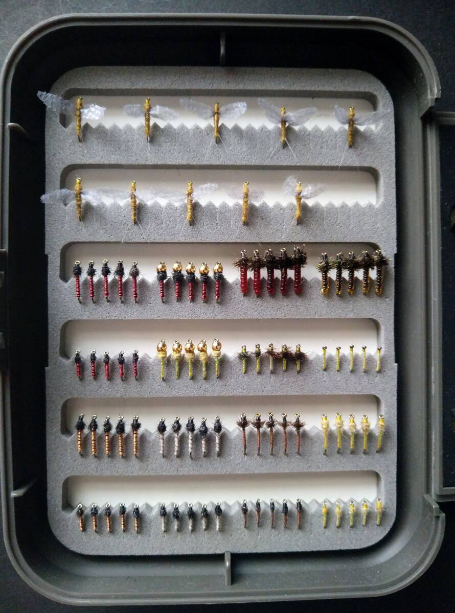 C&Fデザイン「フライ・ボックス」(完成フライ入り)の【中古】です。(なお、緑色のマットはサイズ確認用で商品には含まれないので留意してください。)