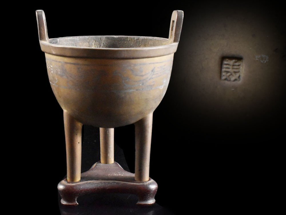 | 商品名 | 【雲】某コレクター買取品 名品 時代 古銅 李王家 鳥銀象嵌 鼎 香炉 台付 古美術品(香道具 茶道具)Y7439 CVTokj |