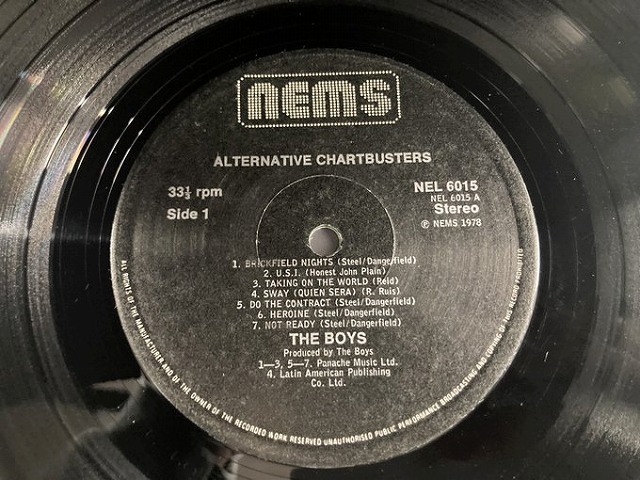 | 【アーティスト】 BOYS 【タイトル】 ALTERNATIVE CHARTBUSTERS 【規格番号】 NEL6015 【商品説明】 UK-ORIGINAL/半透明盤 MAT:A1/B1(初回) w/INNER 【状態】 EX/EX- |