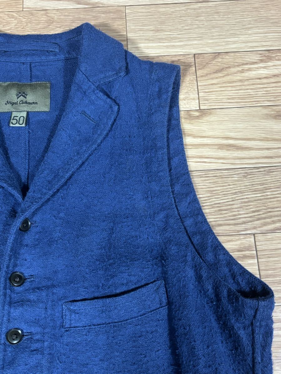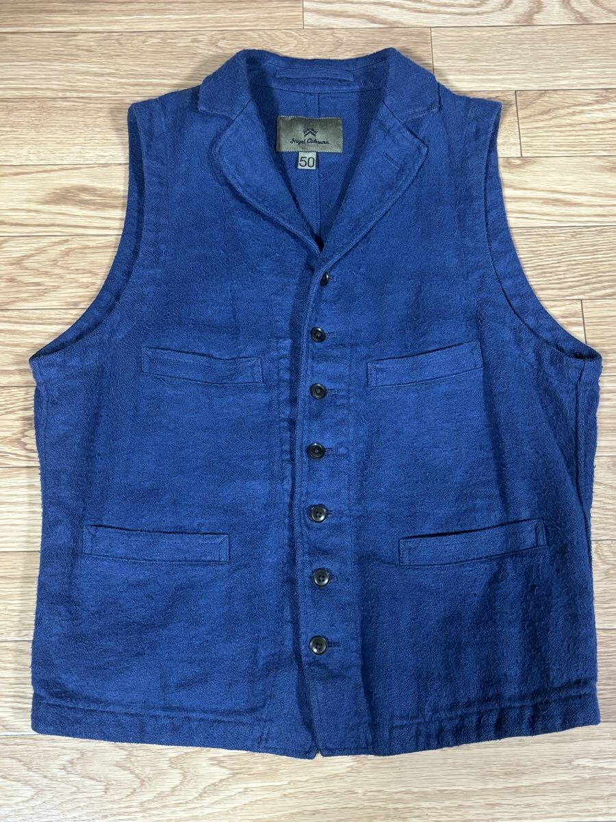 ナイジェルケーボンのベスト、色はネイビー、サイズ50です。中古を購入したのですが着用しませんでした。毛羽立ちがあるような素材感ですが麻100%であり使用しての変化なのか元々このような生地なのか分かりません。| 出价者 | 信用 | 价格 | 时间 |