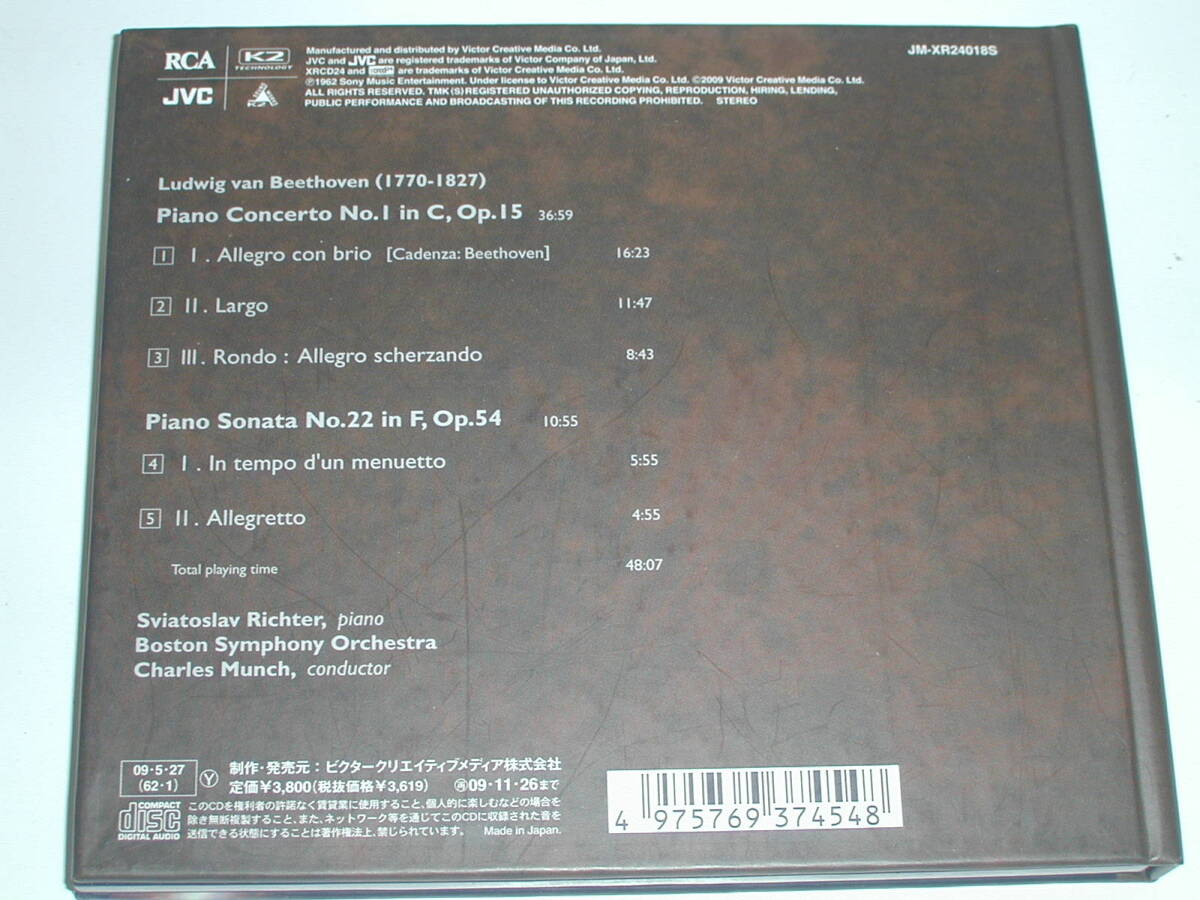CD(Xrcd24) 「ベートーヴェン:ピアノ協奏曲第1番 ピアノ・ソナタ第22番」です。CDは大切に扱っていますが、細かい傷の見落としはご容赦ください。聴かれるには全く問題はありません。