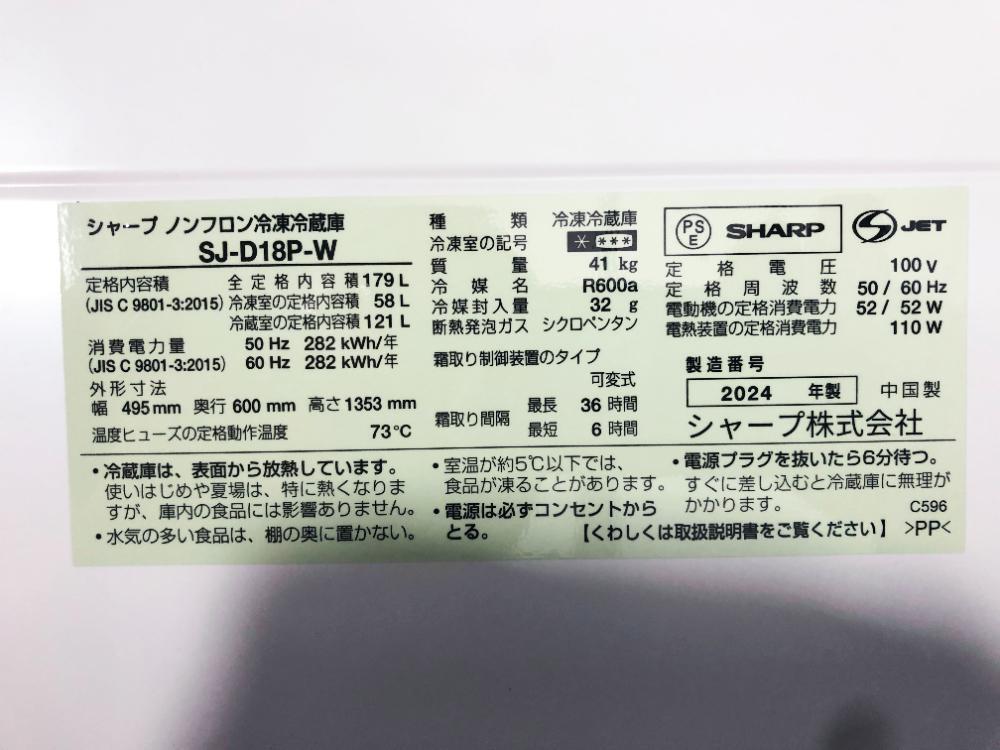 ★引き取りの大歓迎!! ご本人様が直接引取の場合、2,000円値引きます!! 是非お越しください♪ ★お取り置きOK!★ 3ヶ月間までは、無料でお取り置きできます! もしそれ以上の期間をご希望の方は、事前にご相談ください♪ 送料無料★2024年製★極上超美品 中古★SHARP 179L ドアの開閉方向を自由に「つけかえどっちもドア」採用! 2ドア冷蔵庫【SJ-D18P-W】FS8P ※棚・ポケットなど、写真に写しているものが全てです。 ◆動作確認は、しっかり長時間(2~3日間)行っており、冷えも良好で問題ございません。 ◆他に多数出品しており掲載写真をご覧いただければわかりますが、 細かすぎるかもしれませんが、私が気が付いたキズ等に関して、できる限りアップ写真を掲載しております。 こちらの商品に関しては、私が見る限りで申し訳ございませんが、傷や汚れ等なく、全体的にはとても綺麗で、極上超美品だと思います。 ※但し、中古品の為、私の気づかないキズ・汚れ等あるかもしれませんので、気になる方はご遠慮ください。 是非、ご検討をお願いします。 【商品説明】 「つけかえどっちもドア」採用。インバーター搭載。面倒な霜取りも不要。 ■つけかえどっちもドア ドアの開閉方向を自由に付け換えられる「つけかえどっちもドア」を採用。お引越しの際などに便利です。 ■インバーター搭載 省エネで家計にも優しく、静音設計でワンルームにも設置しやすい。 ■パッキンの汚れガード 冷蔵室上部のひさしが、キッチンの気になるホコリや油煙を防いで、パッキンを汚れからガードします。 ■耐熱100℃のトップテーブル 電子レンジをのせて使える、耐熱100℃のトップテーブルを採用。 ■LED照明 明るく見やすいLED照明で、食品の色を自然のままに見せます。 ■ナノ低温脱臭触媒 触媒にナノサイズの粒子を採用。脱臭+抗菌のダブル効果で、冷蔵庫内の気になるニオイ・雑菌・カビを抑えます。 ■大容量冷凍室メガフリーザー まとめ買いも思う存分楽しめます。 ■フレッシュ野菜ケース 野菜や果物の鮮度を保ち、たっぷり保存できます。 ■高さ調節棚 食品の大きさに合わせてトレーの高さを調節できる。 ■ガラス棚 ニオイがつきにくく、汚れをサッと拭き取れる。 メーカー SHARP 外形寸法(幅×高さ×奥行)mm(ハンドル・脚カバーを除く)495×1353×600mm 据付必要寸法(幅×高さ×奥行)mm535×1453×646mm 本体重量(kg)41kg 総有効内容量179L ドア数2ドア ドアタイプ右開き/左開き付け替えタイプ 2024年製 詳しくはこちら↓ ◆動作保証しておりますので、商品到着後3日以内に落札後の商品お取引画面から、動作不良等の内容をメッセージ連絡頂きましたら、初期不良対応は致します。但し、電源が入らない、全く稼働しない致命的な不具合に限ります。 ◆簡易清掃を行っております。 当方としては、清掃を行っておりますが、あえて簡易清掃と言わさせていただきます。 神経質な方や、新品同等のレベルをお求めの方、気になる方はご遠慮ください。 ◆その他、素人なりに慎重に確認したつもりですが、中古品の為、私の気づかない傷や汚れ等あるかもしれません。 専門的・神経質な細かな点までの対応はできませんので、基本的にノークレーム・ノーリターンでお願いします。 ※下記内容を最後まで、必ずお読み下さい。 ご入札・落札の際は、ご了承頂いたものとみなします。 注意事項★☆★☆★☆★☆★☆★☆★☆★☆★☆★☆★☆★☆★☆★☆ ●システム改定に伴い、「 受取連絡 」が非常に重要となりますので、商品到着後24時間以内に受取連絡された方のみ、初期不良対応・保証対象とさせていただきます。 ●私としてで申し訳ございませんが、できる限り誠意ある対応を心がけているつもりですが、顔の見れないお取引が故に色々な方がおり、また人それぞれ感性など異なりますので、ところどころ、あえてと記載させて頂いております。 ●初期不良対応・保証に関して、お届け先へ商品到着後、3日以内が保証対象となります。 ●商品が届いたご住所で動作確認等行ってください。移動しますと保証対象外になります。 ●万が一、商品に不具合等がございましたら、落札商品お取引画面から具体的な不具合等の内容をメッセージして下さい。商品到着後、3日以内メッセージを頂けていない場合は、保証対象外となりますので、必ずお願いいたします。 ●家電に関しては、あえて、電源が入らない・全く稼働しないなどの致命的な不具合、家具類など電気を使わないものは、その物として成り立たない物に限らさせていただきます。 ●動作確認・状態確認が終わるまで、梱包材・運送会社の伝票など必ず保管してください。保管されていない場合、初期不良対応・保証ができなくなる場合がございます。 ●運送事故の恐れがあった場合、所有権がお客様側に移っておりますので、お客様にて運送会社とのご対応をしていただくことになりますが、穏やかなお話合いができる方に関しては、不慣れかと思いますので、こちらもできる