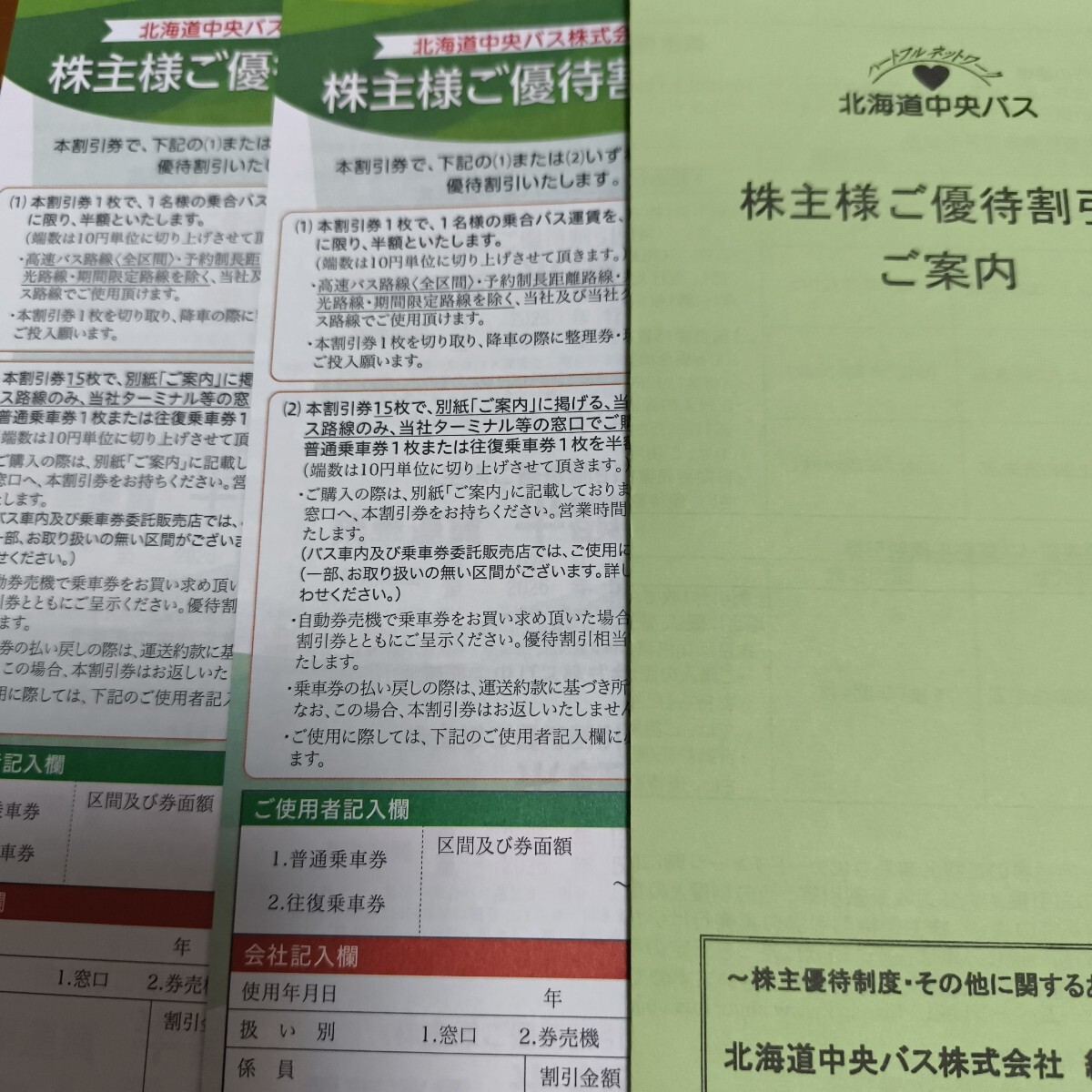 ・2025年12月〜2026年5月末まで有効の北海道中央バスの株主様ご優待割引利用券(2冊、30枚)です。| 出价者 | 信用 | 价格 | 时间 |