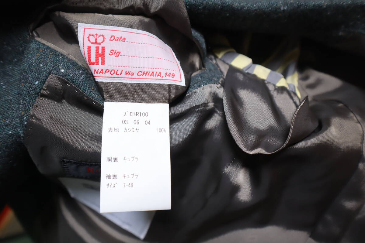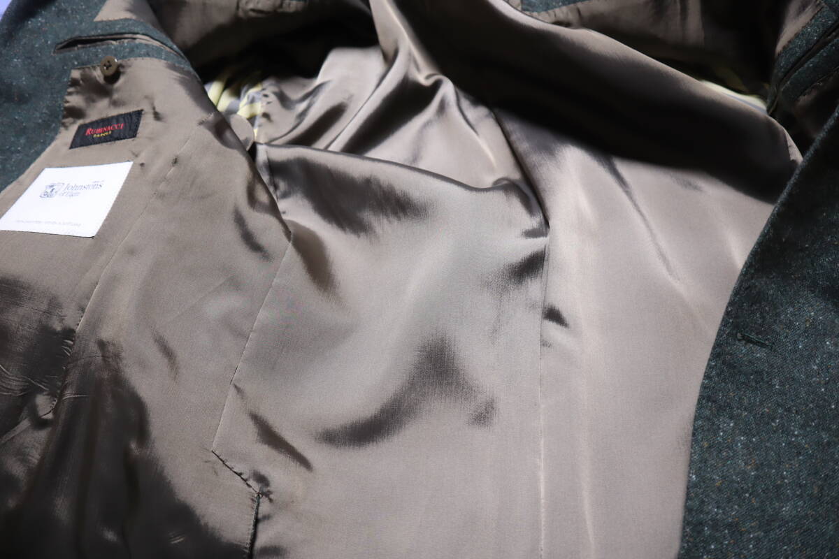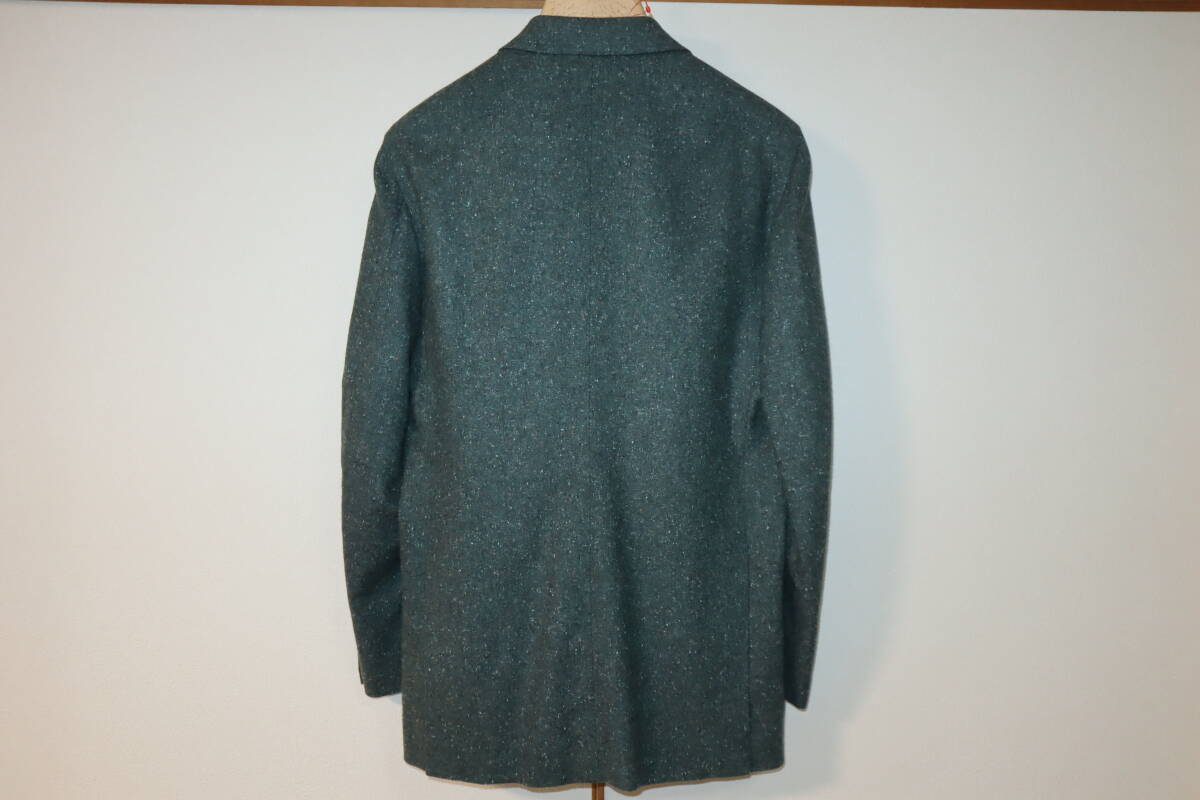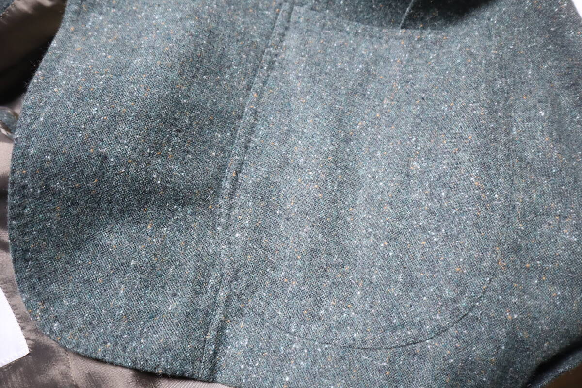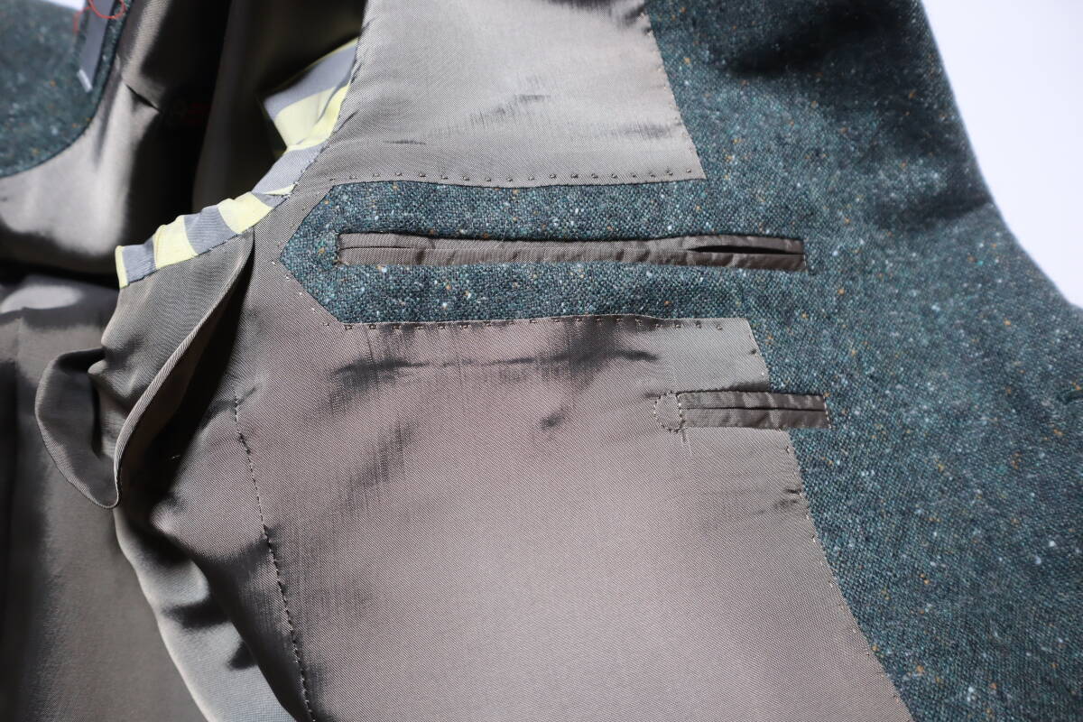 御覧頂き有難うございます。 ■状 態■ 私自身は未使用ですが、オーダーサンプル品のため試着されている可能性があります。 また、色が撮影の状況により、実際の色と多少色合いが違う場合があるかもしれません。ご了承下さい。実際の色は、写真よりもグリーンがかった感じです。 ■サイズ■ サイズ表記は、「48」となっております。 なお、実寸で、着丈75.5センチ、肩幅44.5センチ、袖丈61.5センチ、身幅(第2ボタンあたり)48センチです。多少の誤差はお許しください。 ■仕 様■ 前釦:3個 襟型:ノッチ ベンツ:サイドベンツ 裏仕様:総裏 胸ポケット:パッチ 腰ポケット:パッチ 袖口釦:本開き |