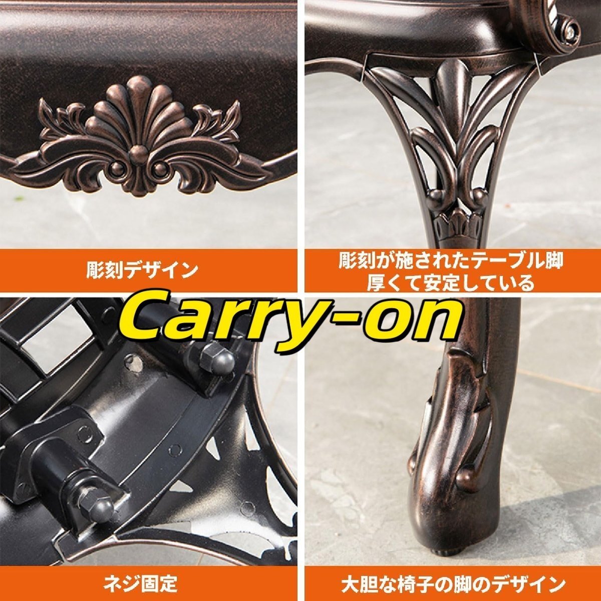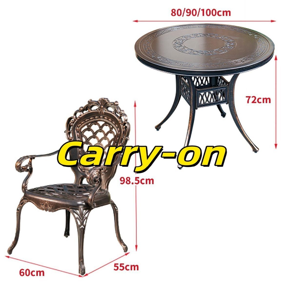 特徴>テーブル椅子セットは鋳造アルミニウムで作られています。>4cmの厚さの3D彫刻テーブルトップと強化された変形防止脚。> 強力な耐荷重性、耐久性があり、変形しにくい。>椅子は広い背もたれとメッシュシートを備え、通気性を確保しています。>テーブルと椅子は汚れや傷に強く、腐食に強く、丸洗い可能です。仕様材質: アルミニウム追加機能: 取り外し可能家具構造:ブラケット構造丸テーブル直径:80cm、90cm、100cm椅子のサイズ: 60x55x98.5cm梱包内容: 長テーブル x 1、椅子 x 4ヒント:モニターの設定により、実際の色は画像と異なる場合がありますので、実際に受け取った製品を参照してください。