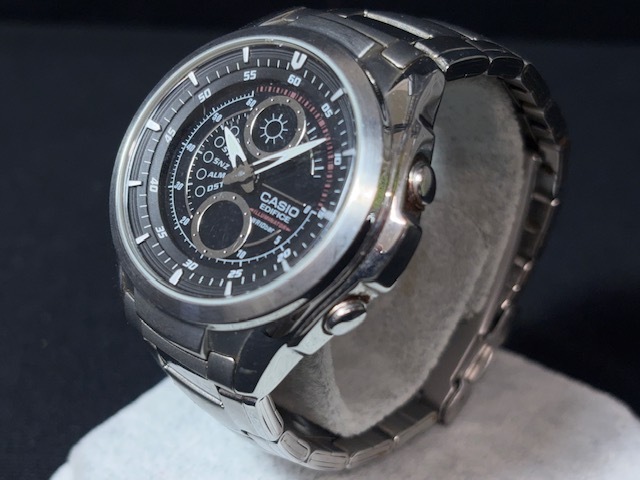 | お譲りいただいたお品物になります。 ◆商品名◆ ※30769 CASIO EDIFICE EFA-116D-1A1JF 腕時計 ステンレススチール 動作未確認 ◆サイズ◆ 直径:約42.4mm(リューズ含む) 腕回り:約15.5cmまで 重さ:約127.6g ◆状態◆ 使用されていた中古品です。 電池が切れており、現状で動作未確認です。 所々、錆があります。 ベルトの替えゴマはありません。 ◆保証◆ 動作確認ができておりませんので【ジャンク品】としての出品となります。 長期間使用されていなかったため、電池交換以外に修理が必要な場合がございます。 どういった場合でも返品・返金には対応いたしかねますのでご了承ください。 ◆その他◆ 詳細は画像にてご確認いただき、ご自身でご判断をお願いします。 個人保管のため、神経質な方のご入札はご遠慮ください。 商品は現状(出品時の状態)でのお渡しになります。 |