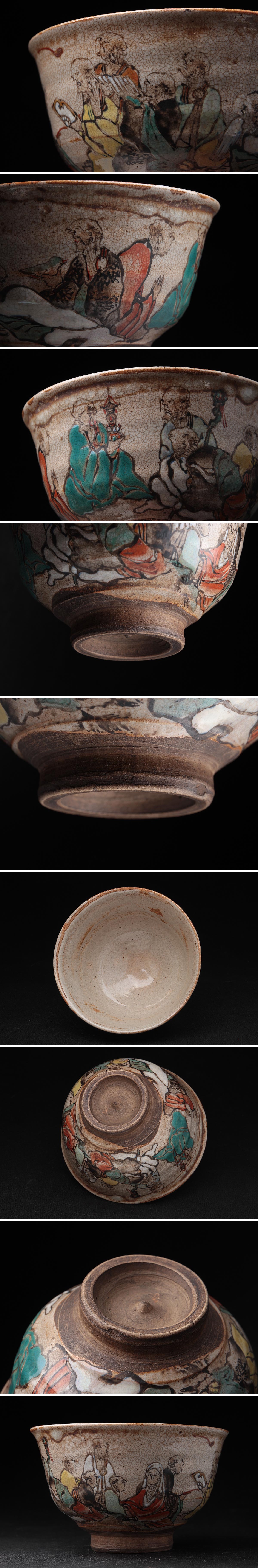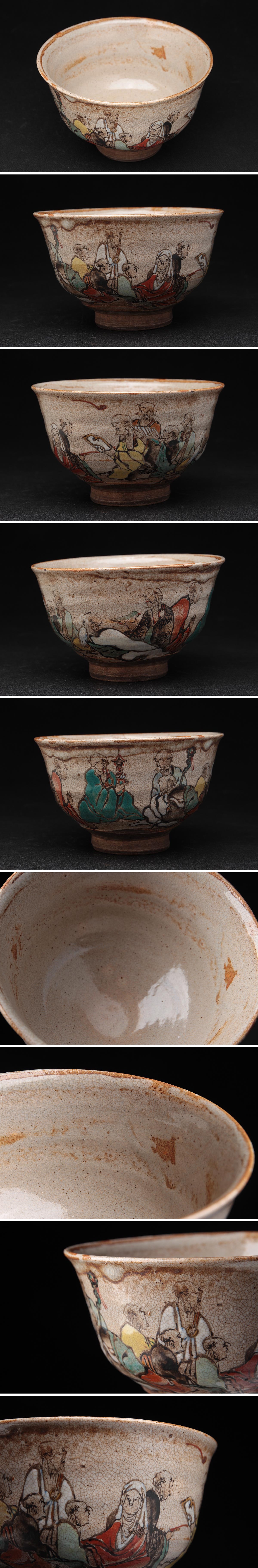 | ◆ 時代茶道具 灰釉 色絵 羅漢図 茶碗・抹茶碗 径12.2cm・抹茶茶碗・仁清茶碗 古陶磁 古美術 ◆