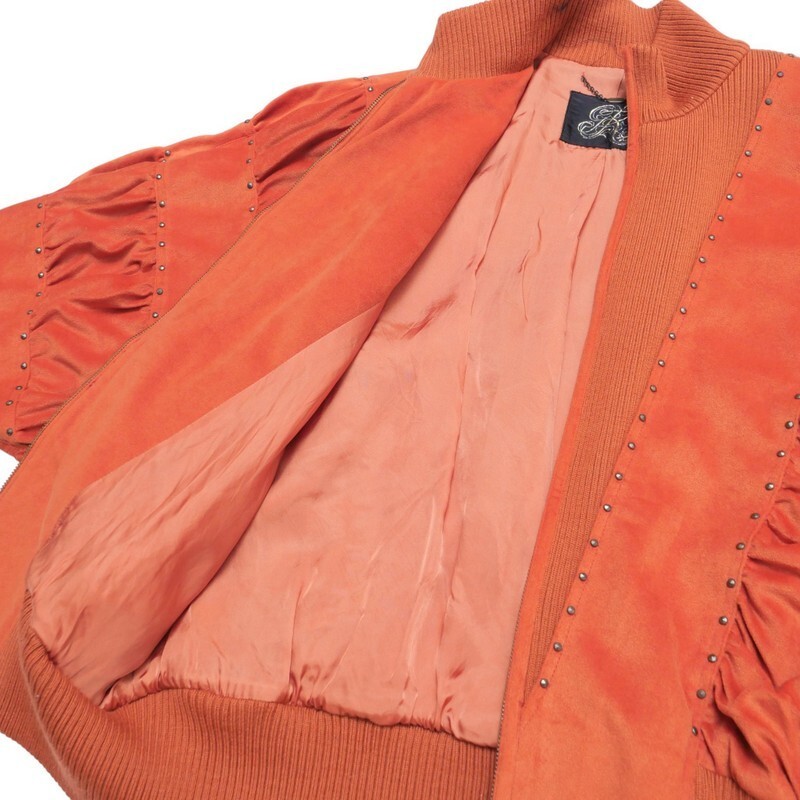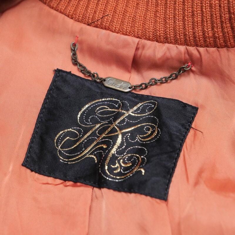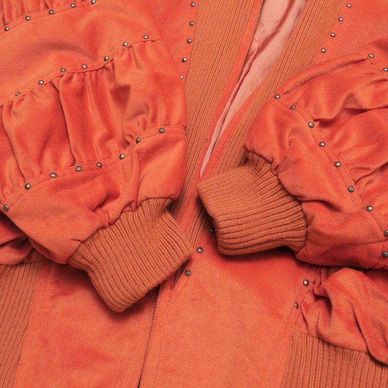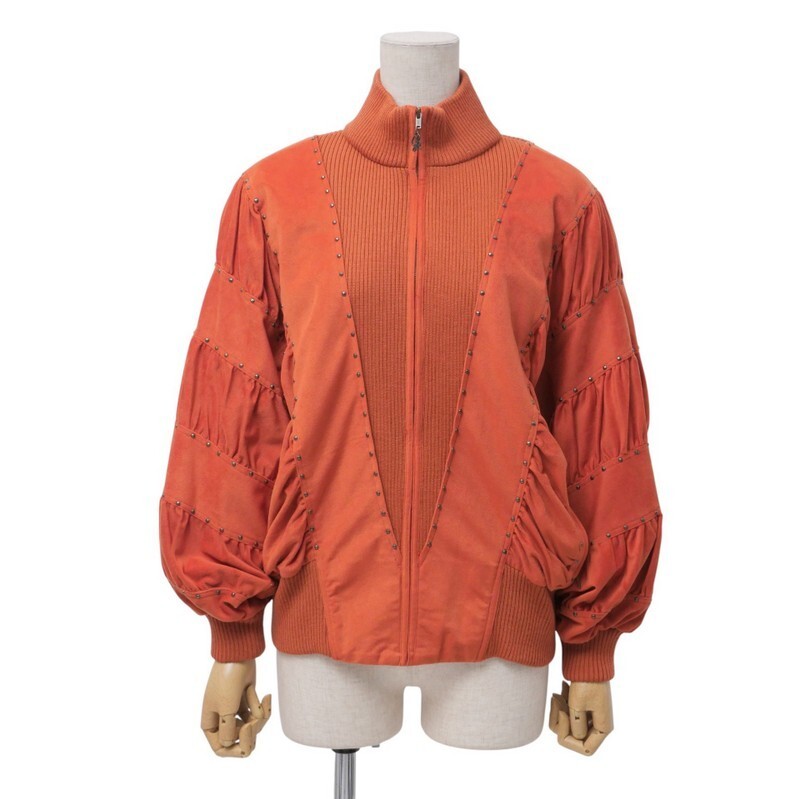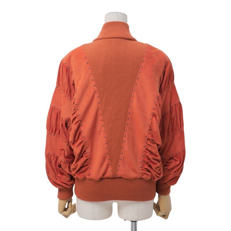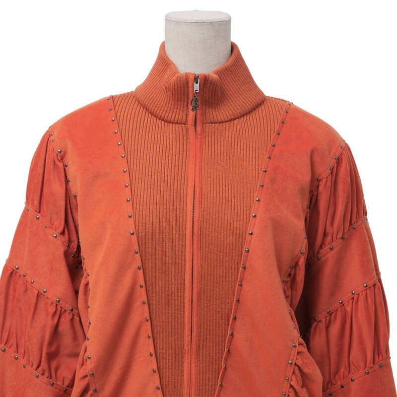 | MI3300★伊太利屋 イタリヤ スタッズ 異素材切替 リブニット ジップアップ スタンドカラージャケット ブルゾン オレンジレッド サイズF | |||