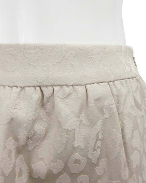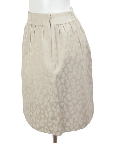 | ヒョウ柄のような模様の入ったオシャレなスカート。ややこうたうがあり、華やかな雰囲気。きれい目スタイルにも甘目スタイルにもあわせて頂けます。あわせやすいベージュで、使いやすい。 |