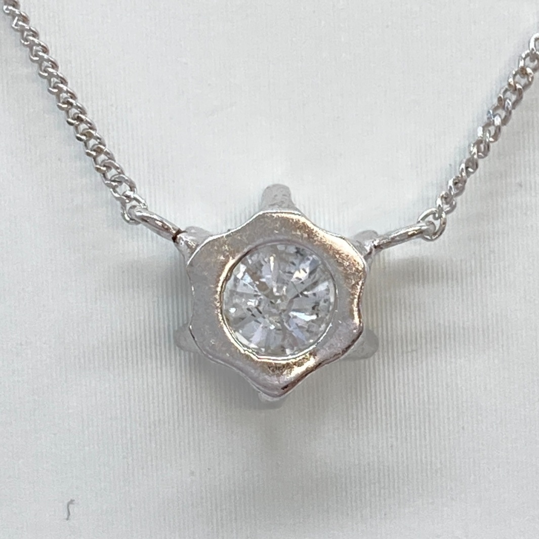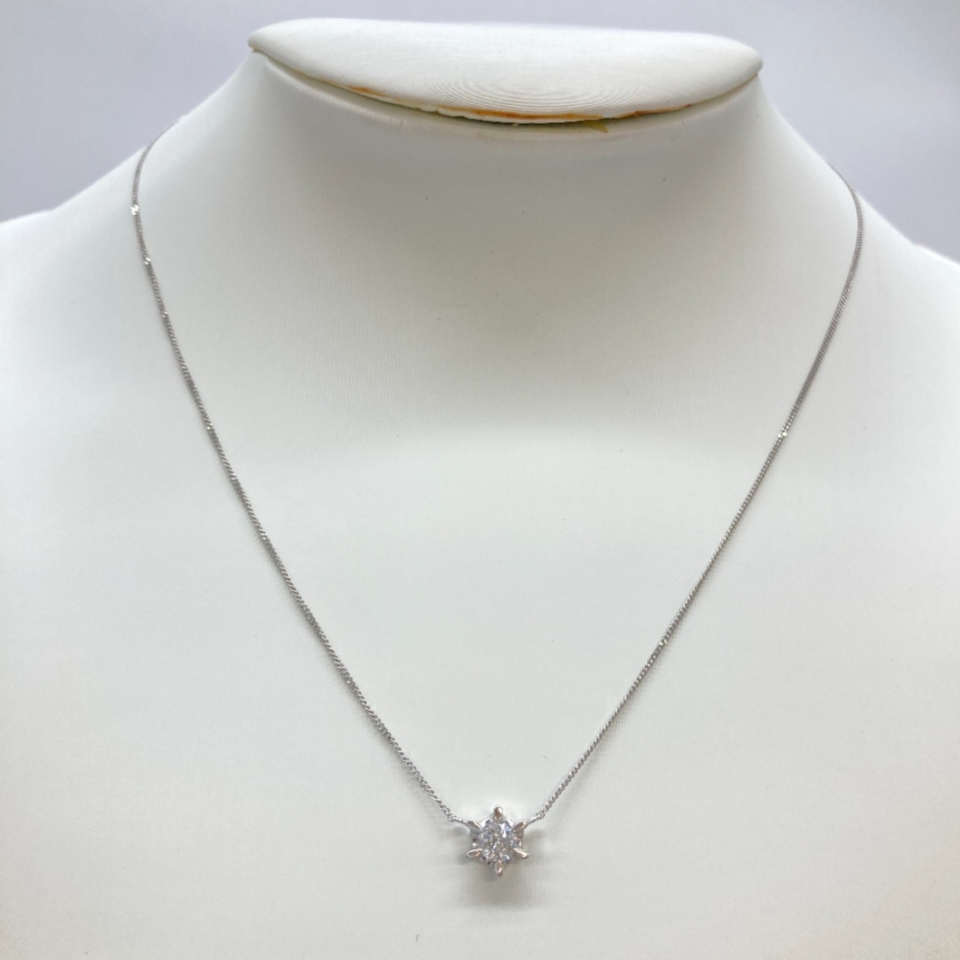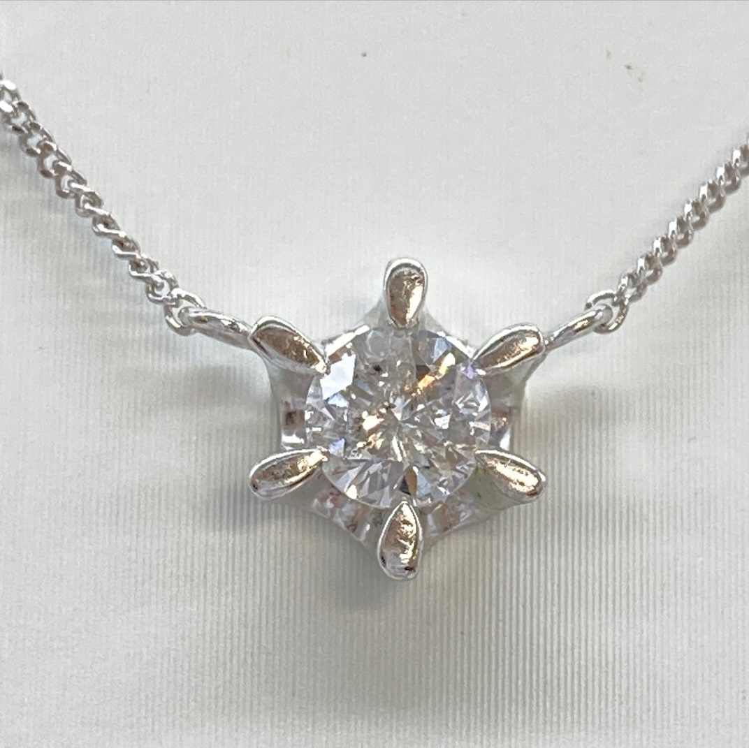 胸元で上品に輝く、プラチナ製天然ダイヤモンド一粒ネックレスです。どんなスタイルにも合わせやすいシンプルなデザインで、普段使いからオフィス、お出かけまで幅広く活躍します。