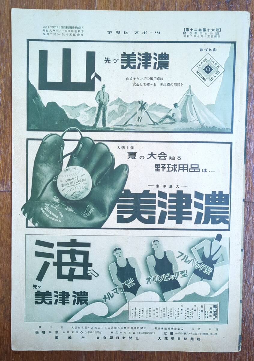 雑誌 戦前 アサヒスポーツ 昭和9年 ボクシング 高校野球 台湾 中国 満州 支那事変 朝鮮 古写真 大学野球(検 日米野球 ベーブルース