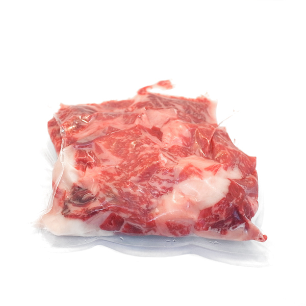 真空パック内の肉色が悪いように見える=悪い肉ではありません。 精肉の鮮やかな紅色は、筋肉色素(ミオグロビン)が空気中の酸素に触れる事により発生します。真空パックは空気に触れていないため、その現象が起きないのです。スーパー等で売られているスライスのお肉の重なった部分の発色が悪いように見える事も、この現象によるものです。真空パックの精肉は真空処理のため一時的に肉色が変化しておりますが、開封後15分程度空気に触れることで元の肉色に戻ります。 |