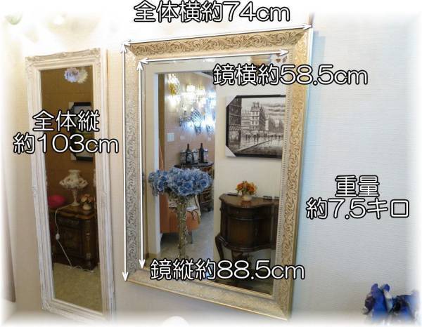 ![]() 【送料無料!】★超激安販売★新品・大型アンティーク調シンプルデザイン姿見鏡 額のデザインは画像で見るより重量感&立体感がありおしゃれでとてもよい作品と思います ミラー部分は、面取加工で厚み5mmのカットガラスになっており歪み等無く上品に仕上がっております 額の色目はアイボリーベースでシャンパンゴールドのペイントを彫刻部分に施した とてもシンプルなデザインです 背面に吊金具が付いており壁掛けでの使用可能です サイズは縦約103cm(鏡部分88.5cm)横約74cm(鏡部分58.5cm)厚み約3.5cm・重量約7.5キロです ![]() | |