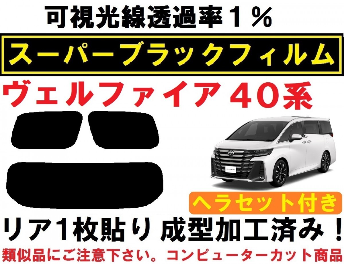 | ヴェルファイア40系用スーパーブラック『可視光線透過率1%』1枚貼り成型加工済みフィルム リア3面セットです。(専用施工液付き) 令和5年6月~ AAHH40W AAHH45W TAHA40W TAHA45W AAHP45W 等に適合します。 ※画像3 デジタルインナーミラーの有無でガラスの形状が異なります。ご落札後、ご指定下さい。 ※令和7年1月~ 一部改良モデルにも適合致します。 ※適合等 ご不明な点など有りましたら、お気軽にご質問下さい。 ◇◆◇当商品には、画像2のヘラセットが付属します◇◆◇ ■滑りの良いシリコンタイプのゴムヘラ スムーズに水切り(清掃)・貼り付け後の水抜きが出来ます。 実際の業務でも色々な物を試しましたが、シンプルなこの形状・このメーカー・このグレードの物が1番使いやすいです。 柔軟性が有りガラス(フィルム)に密着するため、フィルム折れも防げます。 ■使いやすい厚みとコシの有るプラヘラ 形状は似ていても各メーカーにより硬さ・厚みなど色々と有ります。 慣れていない方でも扱い易いように少々柔らか目の物になります。 ヘラ先にはフッ素樹脂加工のクロスを貼って有りますので、滑りが良くキズを防止します。 ■ワイプオール(不織布ワイパー) 布同様の丈夫さと紙の持つ吸水性を発揮。糸くずの発生が無く均一素材のため異物混入の心配が有りません。 施工前のガラスクリーニング~施工時にフィルムが触れる可能性の有るガラスの周りのゴム部品の拭き取り清掃~吸水等に大変便利です。 全て実際の業務に使用している物で、その中から使いやすい物を選んでいます。 ヘラセットがご不用の場合、フィルムのみの商品も有ります。こちら ◇◆◇リア1枚貼り成型加工済み◇◆◇ リアガラスの湾曲に合わせて熱成型加工して有りますので、平面に貼るのと同様にたるみが出ず1枚貼り出来ます。 ※通常の成型加工に加え、独自の加工を施し しっかりと成型加工してありますので、ヒートガン(ドライヤー)等は不要です。 ◇◆◇精密コンピューターカット◇◆◇ 貼りやすさを最優先に各部のサイズ・形状など微調整し、改良を重ねた独自のデータを製作。 高精度な最新・大型カッティングプロッターによるカットで正確で滑らかなカットラインを再現しています。 ◇◆◇専用施工液付属◇◆◇ 軽視されがちな施工液ですが、貼りやすさ・耐久性などにに大きく関わる部分になります。中性洗剤などで代用せず、必ず付属の専用施工液をご使用下さい。 濃度については車種・季節などにより変わりますので、個別にお知らせ致します。 ◇◆◇業務用高品質フィルム使用◇◆◇ 使用しているフィルムは、安心の国内メーカー 業務用高品質フィルム「ニュープロテクション」シリーズです。(可視光線透過率1%) 業務用フィルムの中で最も濃いタイプで、紫外線99%カット 遮熱性も高めです。 同シリーズで可視光線透過率 5% 10% 15% 25% の物もご用意出来ます。 ご希望の場合は、ご落札後濃さの指定をして下さい。(部分的な色変えも可能です) ご指定の無い場合、全て1%になります。 部分的にフィルムが必要になった場合、単品販売も承ります。 他にも40系ヴェルファイア用フィルム、各種出品中です。こちらもご覧ください。 ■スライドドア部分、追加をご希望の場合。 この車両はリア3面は施工性良好ですが、スライドドア部分は内張り・サンシェード脱着が必要になり構造的にも施工も簡単では有りません。 上記をご理解頂ける方のみ販売させて頂きます。 スライドドア追加、同梱価格4000円 こちら をご落札下さい。 ご不明な点など有りましたら、お気軽にご質問下さい。 | ||