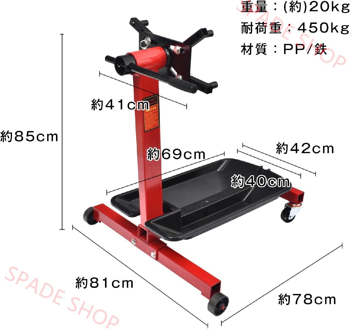 ■移動がラクラクなキャスター付き ■トレー(受け皿)付き ■頑丈な鉄製フレーム ■コンパクト設計 ■最大許容荷重450kg ■多様なエンジンに対応 ■サイズや形状に合わせてアームを調整可能 【商品内容】:エンジンスタンド 【サイズ】:(約)81cm×78cm×85cm 【重量】:(約)20kg 【耐荷重】:450kg 【材質】:PP/鉄 ○使用上の注意事項○ ※改造/本来の目的以外/強い衝撃などはお控え下さい。 ※仕様は入荷時期により予告なく変更する場合があります。 ※ディスプレイ画面等の環境上、写真と実際の商品の色とは多少違う場合がございます。 ※海外輸入商品により、汚れ/ダメージ等がついている場合がございます。 ○以上、ご同意の上ご購入ください!○ |