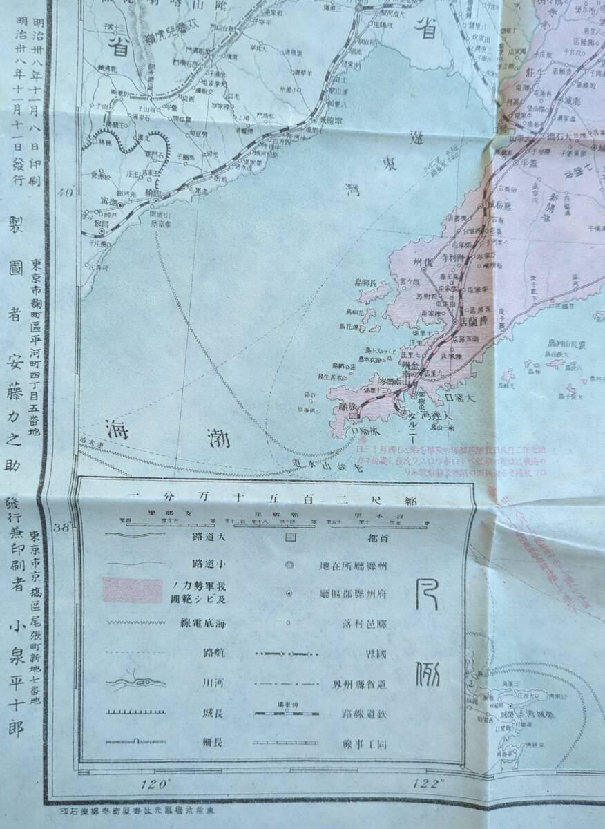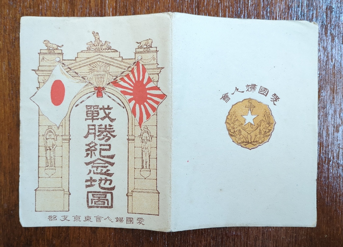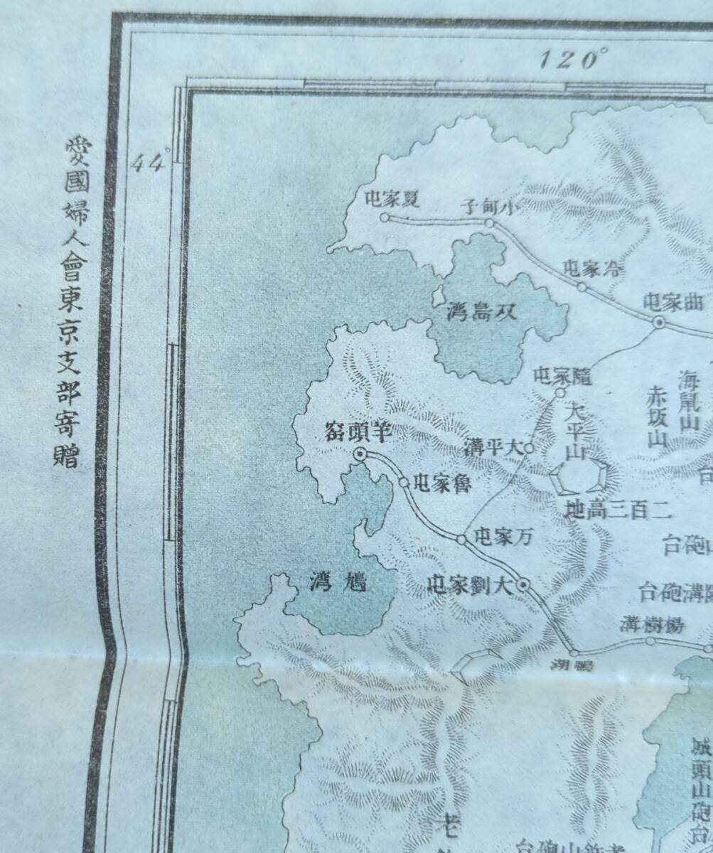 古地図 戦勝記念地図 袋付 明治38年 朝鮮 中国 満州 支那事変 樺太 愛国婦人会東京支部寄贈 古文書 鳥瞰図 資料 史料 古典籍 路線図