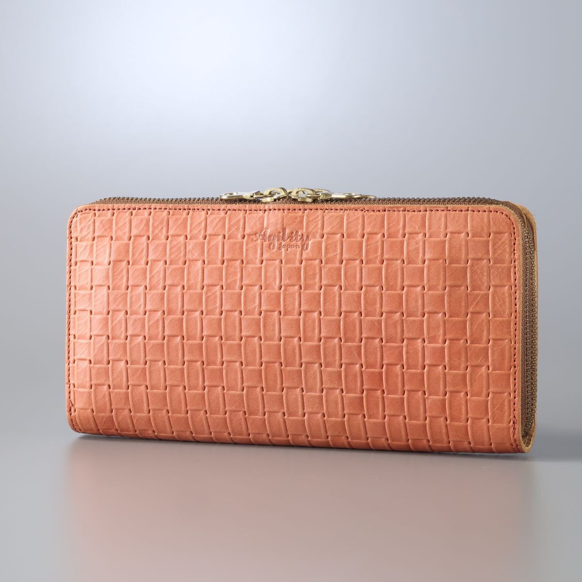 | GS5647▽AGILITY JAPAN アジリティ ジャパン メッシュ型押しレザー 大容量 ラウンドファスナー 長財布 ロングウォレット オレンジ系 | |||