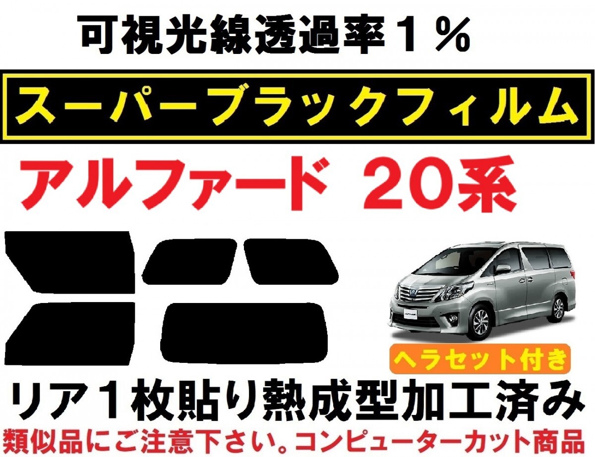 | アルファード20系用スーパーブラック『可視光線透過率1%』1枚貼り成型加工済みフィルム リア5面セットです。(専用施工液付き) 平成20年5月~27年1月 ANH20W GGH20W GGH25W ANH25W ATH20W に適合します。 ※適合等 ご不明な点など有りましたら、お気軽にご質問下さい。 ◇◆◇当商品には、画像2のヘラセットが付属します◇◆◇ ■滑りの良いシリコンタイプのゴムヘラ スムーズに水切り(清掃)・貼り付け後の水抜きが出来ます。 実際の業務でも色々な物を試しましたが、シンプルなこの形状・このメーカー・このグレードの物が1番使いやすいです。 柔軟性が有りガラス(フィルム)に密着するため、フィルム折れも防げます。 ■使いやすい厚みとコシの有るプラヘラ 形状は似ていても各メーカーにより硬さ・厚みなど色々と有ります。 慣れていない方でも扱い易いように少々柔らか目の物になります。 ヘラ先にはフッ素樹脂加工のクロスを貼って有りますので、滑りが良くキズを防止します。 ■ワイプオール(不織布ワイパー) 布同様の丈夫さと紙の持つ吸水性を発揮。糸くずの発生が無く均一素材のため異物混入の心配が有りません。 施工前のガラスクリーニング~施工時にフィルムが触れる可能性の有るガラスの周りのゴム部品の拭き取り清掃~吸水等に大変便利です。 全て実際の業務に使用している物で、その中から使いやすい物を選んでいます。 ヘラセットがご不用の場合、フィルムのみの商品も有ります。こちら ◇◆◇精密コンピューターカット◇◆◇ 貼りやすさを最優先に各部のサイズ・形状など微調整し、改良を重ねた独自のデータを製作。 高精度な最新・大型カッティングプロッターによるカットで正確で滑らかなカットラインを再現しています。 施工業者だからわかる、貼りやすいサイズ・形状に仕上げています。 ◇◆◇リア1枚貼り成型加工済み◇◆◇ リアガラスの湾曲に合わせて熱成型加工して有りますので、平面に貼るのと同様にたるみが出ず1枚貼り出来ます。 ※最適な状態に成型加工して有りますので、ヒートガン(ドライヤー)等は不要です。 ◇◆◇専用施工液付属◇◆◇ 軽視されがちな施工液ですが、貼りやすさに大きく関わる部分になります。中性洗剤などで代用せず、必ず付属の専用施工液をご使用下さい。 濃度については車種・季節などにより変わりますので、個別にお知らせ致します。 ◇◆◇業務用高品質フィルム使用◇◆◇ 使用しているフィルムは、安心の国内メーカー 業務用高品質フィルム「ニュープロテクション」シリーズです。(可視光線透過率1%) 業務用フィルムの中で最も濃いタイプで、紫外線99%カット 遮熱性も高めです。 同シリーズで可視光線透過率 5% 10% 15% 25% の物もご用意出来ます。 ご希望の場合は、ご落札後濃さの指定をして下さい。(部分的な色変えも可能です) ご指定の無い場合、全て1%になります。 部分的にフィルムが必要になった場合、単品販売も承ります。 他にも20系アルファード用フィルム、各種出品中です。こちらもご覧ください。 ご不明な点など有りましたら、お気軽にご質問下さい。 | ||