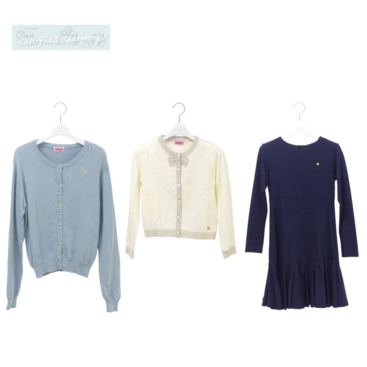 ①ワンピース(150) 色はネイビー ①カーディガン M(130~140㎝) 色はホワイト ②カーディガン L(150~160㎝) 色はブルー 付属のティペットなし 送料込みのため、他商品との同梱はできません。 ご来店受け渡しの場合も送料分の返金はできませんので ご了承くださいませ。 |