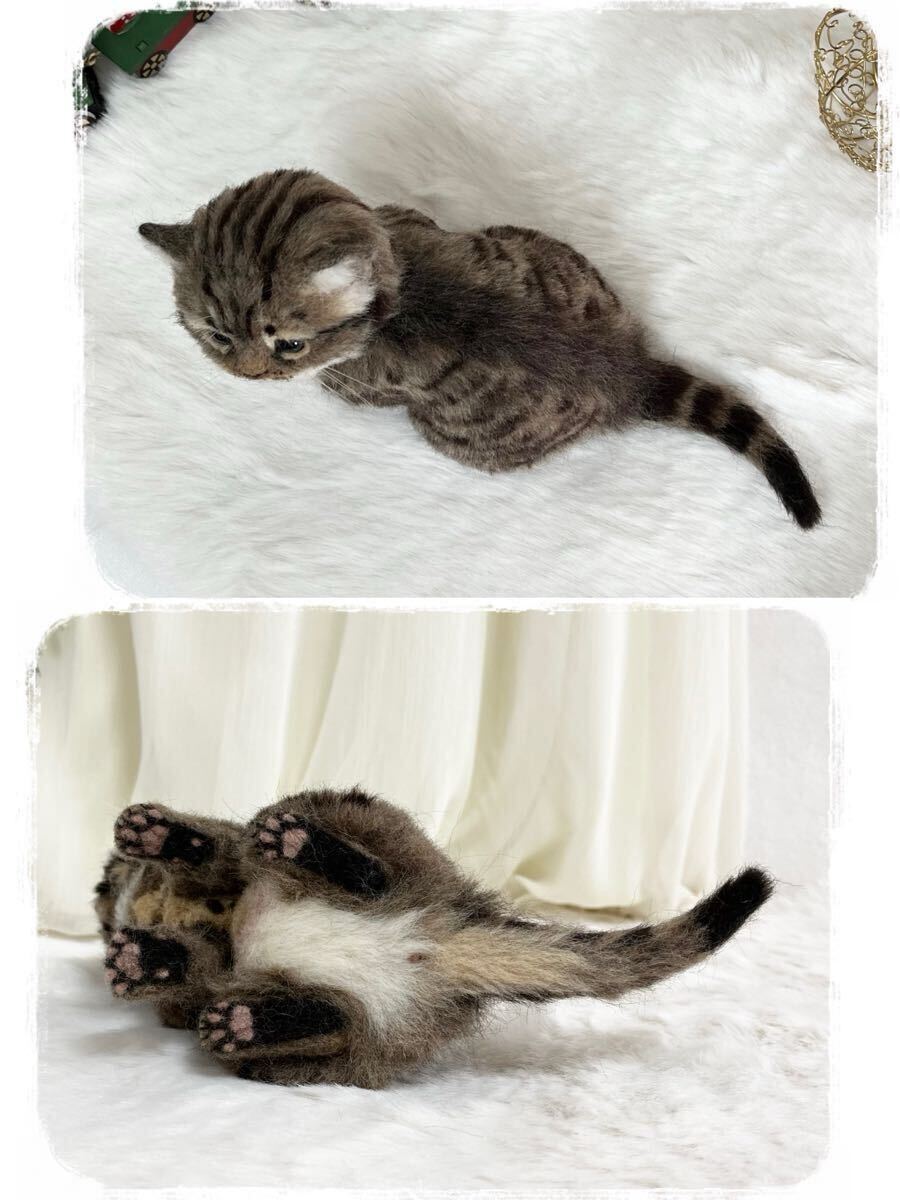 | 数ある作品の中からお目にとめて頂き、誠に光栄です。 羊毛フェルトで作りました、キジトラベビーです。 完全一点ものの世界に一体だけの子です。 ☆リアルに近いサイズですので存在感バッチリです(*^^*) ☆角度によって様々な表情も見せてくれる子です(*^^*) ☆末永く可愛がってくださる里親さまとご縁がありましたら嬉しく思います☆(*´▽`*)・゜*☆・。* ☆オークションへのご参加、お取引についていくつかご注意、お願いがございます。 説明欄を最後までご一読くださいますようお願いいたします。 _(*u v u*) ☆ゆうパック(一律1100円)でお届けいたします☆彡彡お受け取りになられましたら必ず『受取連絡』をお願いいたします☆彡彡 ○丁寧に植毛致しました短毛猫です。着色料などは使用せず細部も羊毛で表現しています。 ○プラスチックアイのオリジナルカラーです。 ○サイズ(作品形状そのまま) ・高さ・床から耳先まで約13.5cm ・右耳先からしっぽの先まで約21cm (ミリ単位の誤差がございました場合はご容赦下さい) ・ ●破損や変形の原因になりますので、強くひっぱったり、擦ったり押したりなさいませんようお願い致します。 ●周りの小物(観葉植物(造花)等)、は撮影用の小道具ですので商品に含まれません。 ●PC、スマホ等お使いの環境によりイメージ画像の色や風合いが多少異なって見える場合があります。 ●心を込めて丁寧に作っていますが、素人の作品ですので至らない点があるかもしれません。 ハンドメイドにご理解のある方のご入札を希望します。 ●ノーキャンセル、ノークレーム、ノーリターンでお願い致します。 ☆羊毛フェルトでできた猫さんは大変デリケートですので、鑑賞用でお願い致します。 ●※※お取引きするにあたり、悪い評価が複数ある方、著しく不安を感じる方のご入札を評価内容から判断し、予告なく削除させて頂く場合がございます事ご了承下さい。 ※落札からお届けまで、スムーズなお取り引きが出来ますよう心掛けております。 オークション終了後、24時間以内にお届け先情報とお支払い方法等のご連絡をいただけます事お約束ください。 ※お支払いは3日以内をお願い致しております。ご都合のある方はお早めにお知らせ下さい。 ※《重要》で定められたお支払い方法、期限を厳守でお願いいたします。 期限内でのお手続きが困難な場合には、正常にお取引を完了できないものとし、ヤフーガイドラインに基づき落札者の削除をいたします。 この場合、落札者削除ができる期間が限られておりますのでお取引き期限内の操作になります事ご了承くださいませ。 削除操作後、または期限を過ぎ削除操作ができなかった場合にも、ガイドラインに基づき悪い評価がつきますのでご了承くださいませ。 ※終了間際のご質問には対応できない場合がございます。 お取引に関するご意見、ご質問は『取引メッセージ』にてご連絡下さい・゜・。* ※利用規約、ガイドラインに基づき誠意をもって出品しておりますが、 もしお気付きの点、ご不明な点、ご質問等ありましたら質問欄からメッセージどうぞ _(*u v u*)_ 最後までお読みいただきありがとうございました。 _(*u v u*)_ | |||