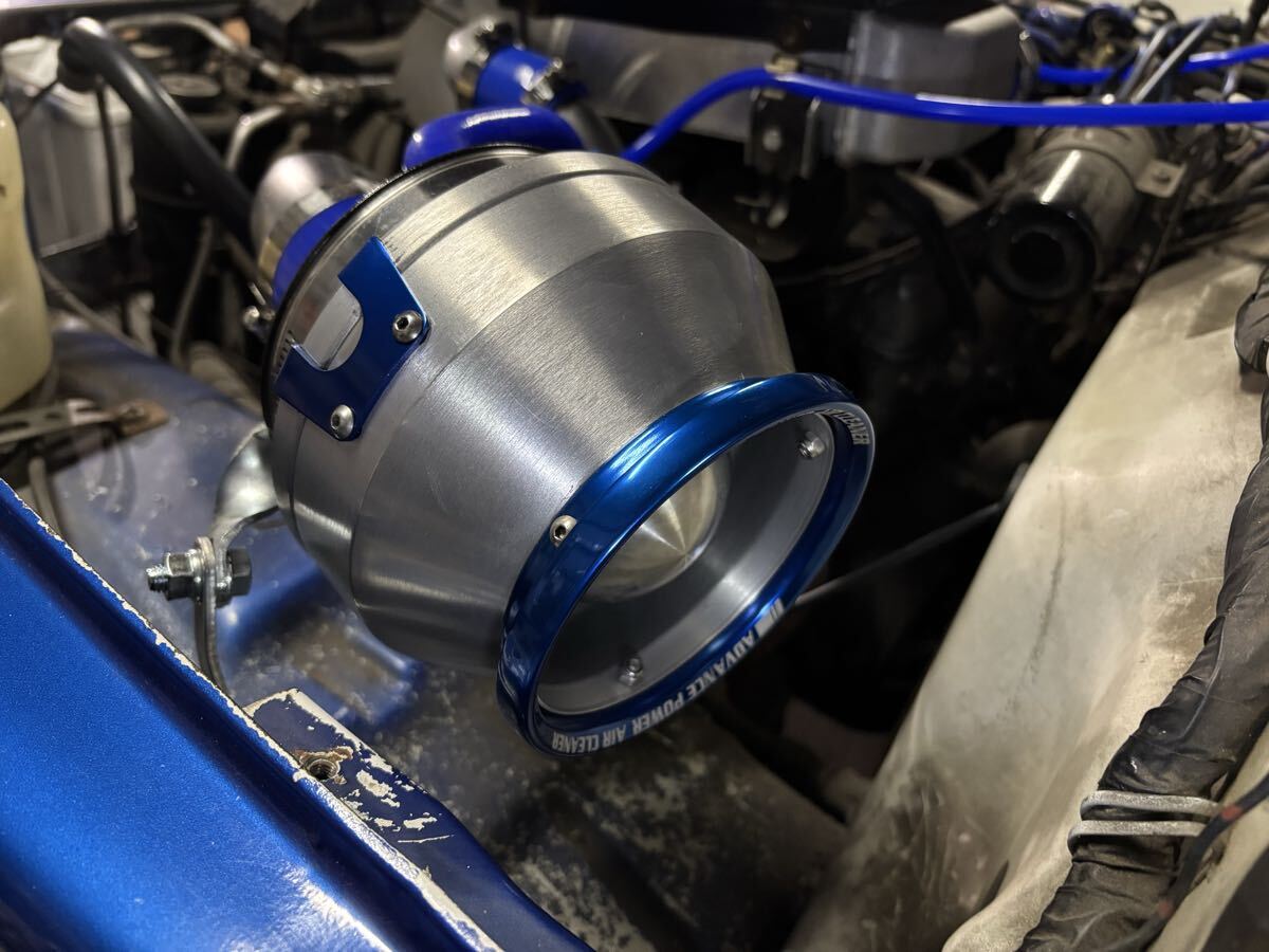 ● 固定が出来ました後はブルーバキュームホースを画像の通りに接続するのみです。車検対応でお使いになる場合は付属のリターンファンネルに取り替えてリターンホースを画像のとおりエアクリ側のアダプターに接続するのみです。エアクリーナーの固定位置はボディ側面手前の6φホールを利用し取付け固定してください。大気開放でお使いになる場合はデュアルリリースファンネルを装着し付属してあるメクラキャップをエアクリ側に取り付けて使用します。【【発送時は大気開放型仕様のデュアルファンネル&メクラキャップを取付発送しています】】