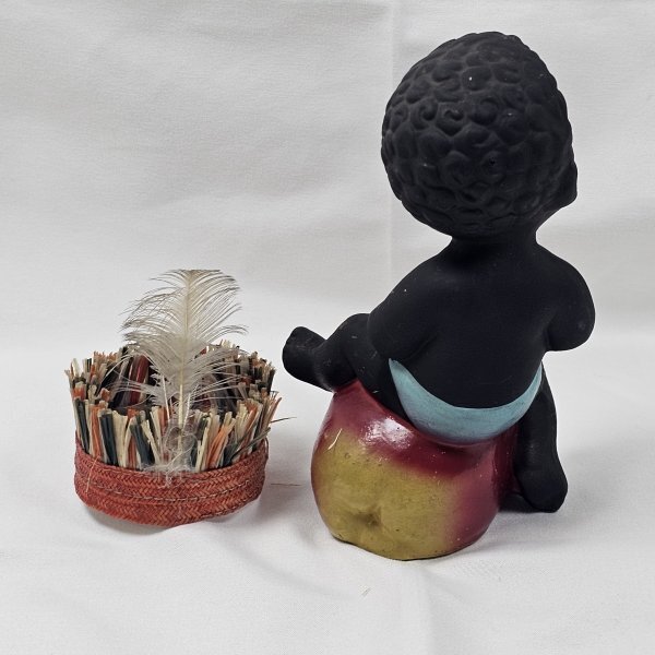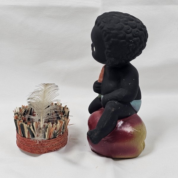 ※この商品は、製造当時の名称で「クロンボ人形」「くろんぼ人形」などと呼ばれていたジャンルの陶器人形です。現代の価値観とは異なりますが、歴史的なコレクション品として出品しています。