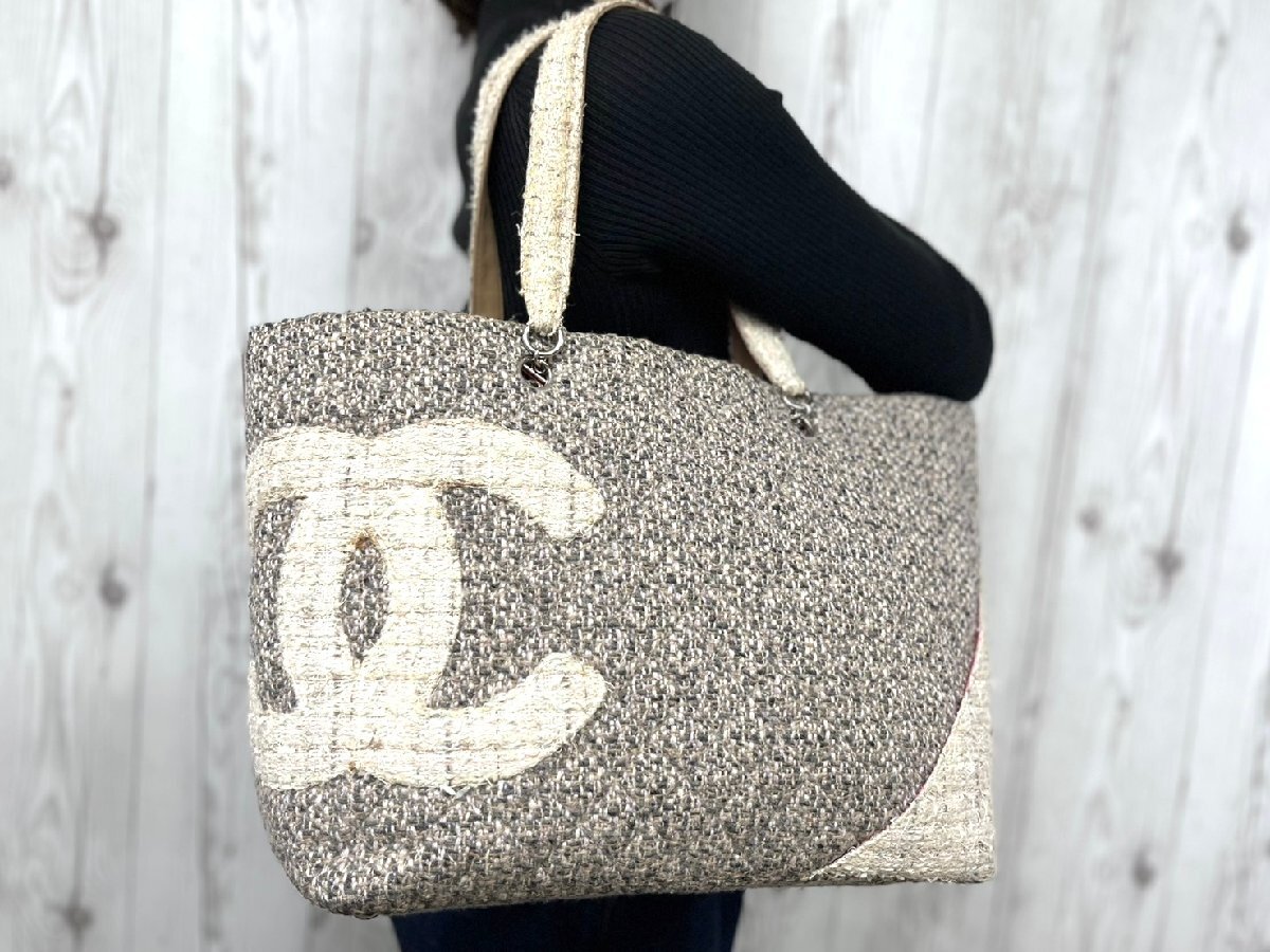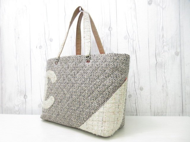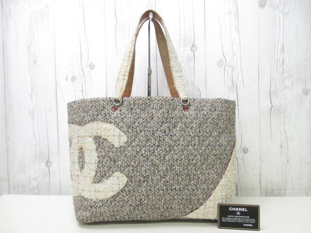 | 美品 CHANEL シャネル ココマーク カンボンライン シールカード有 トートバッグ ショルダー バッグ ツイード グレー系 A4可 92468 | ||