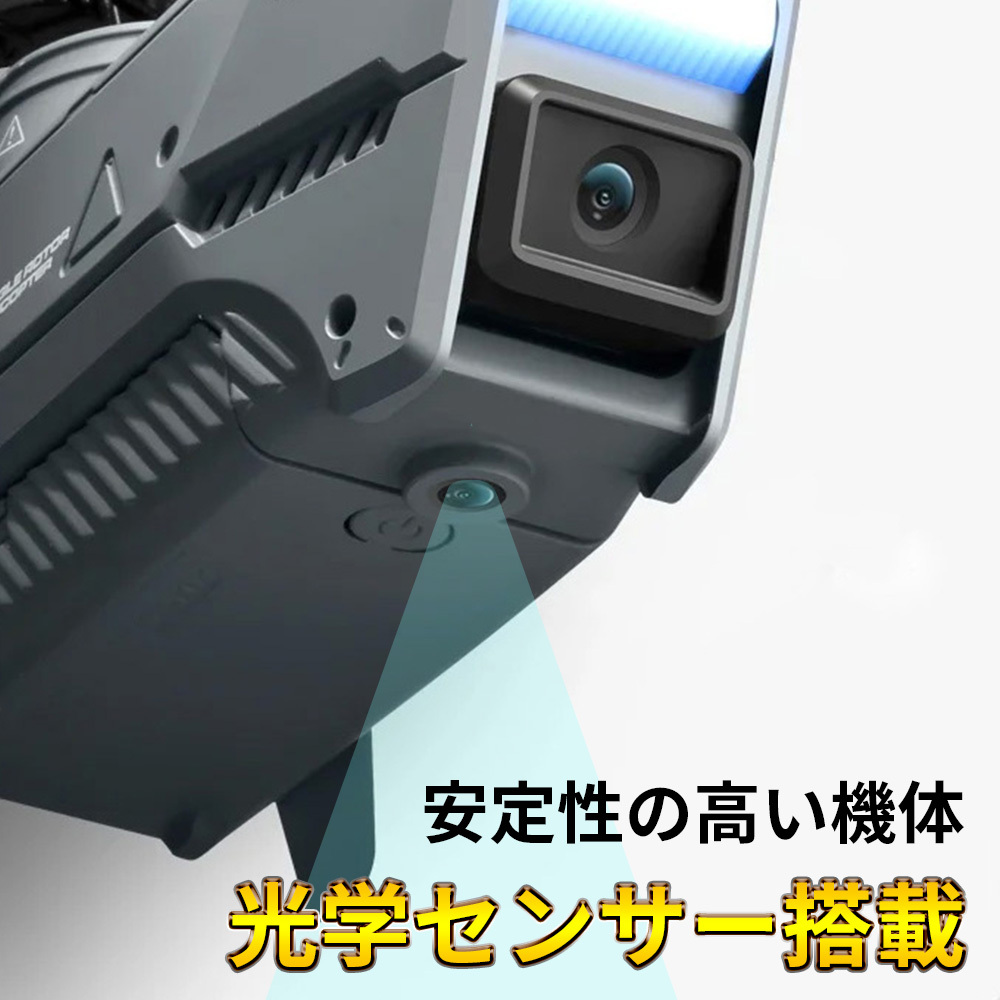 | スペック | 送信機電源:乾電池 バッテリー電圧:3.7V バッテリー容量:1200mAh バッテリー充電:MicroUSB 飛行時間:15分 飛行速度切替:2段階 飛行距離:150m 映像距離:150m 画素数:720P JPEG:7680x4320 MP4:1280x720 SDカード対応:なし カメラ上下:なし カメラ角度:45~90度 カメラジンバル:なし モーター:ブラシ GPS:なし 障害物センサー:なし 光学センサー:あり プロペラガード:なし VRゴーグル:対応 |