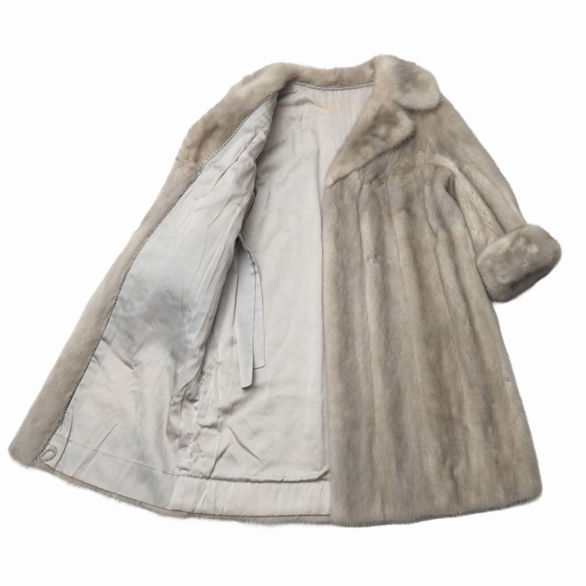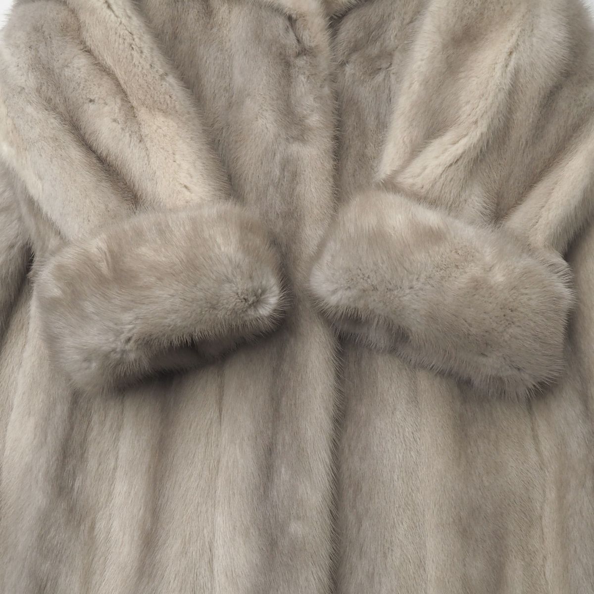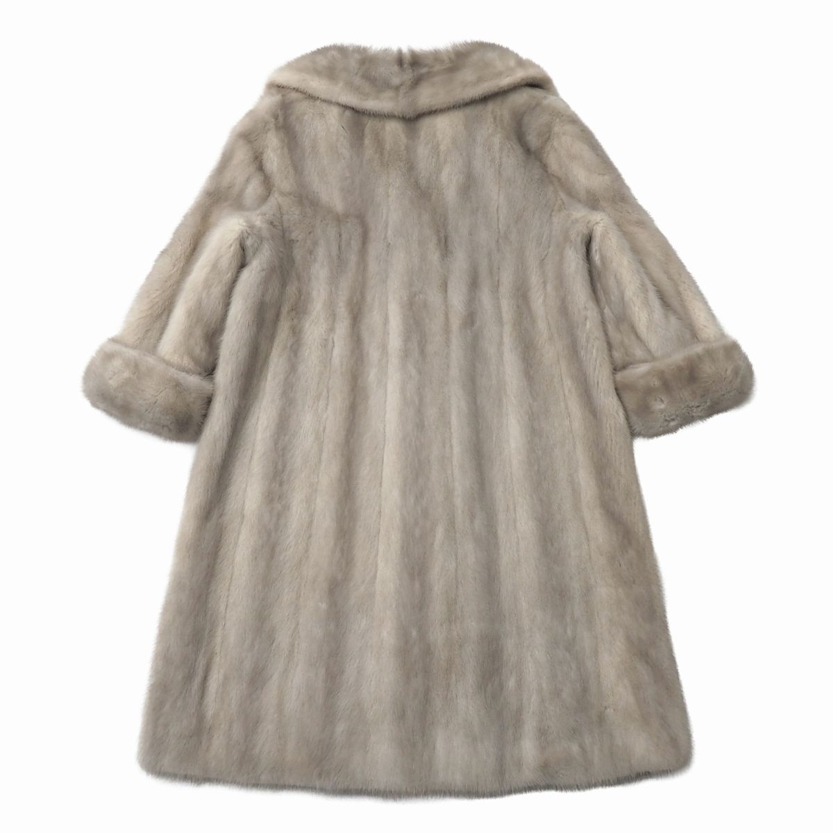 | GS5706◇サファイアミンク 逆毛衿 ファーコート ロング丈 袖口ロールアップ 毛皮コート M-L相当 着丈約98cm グレー系 | |||