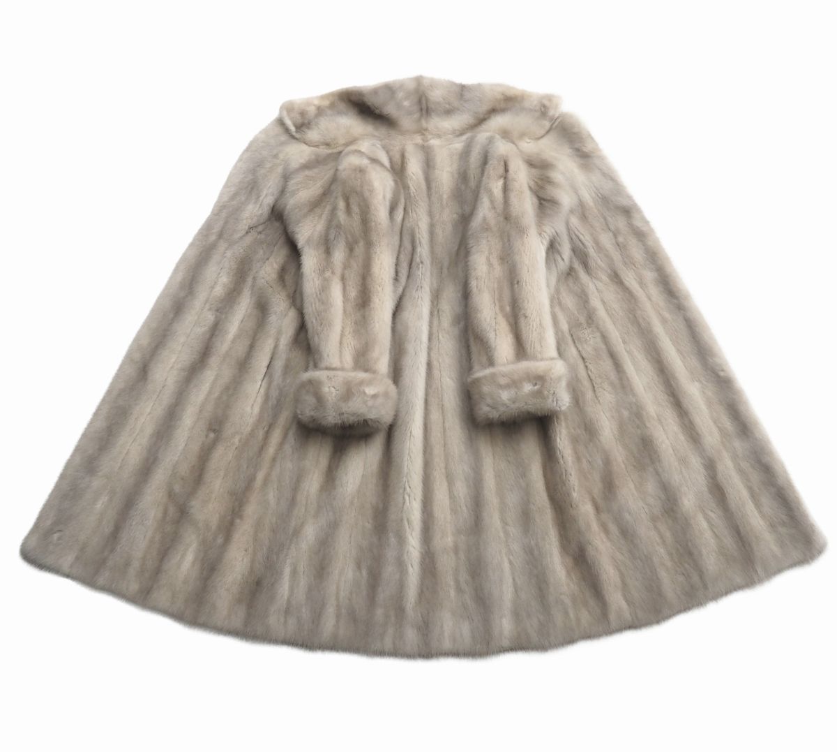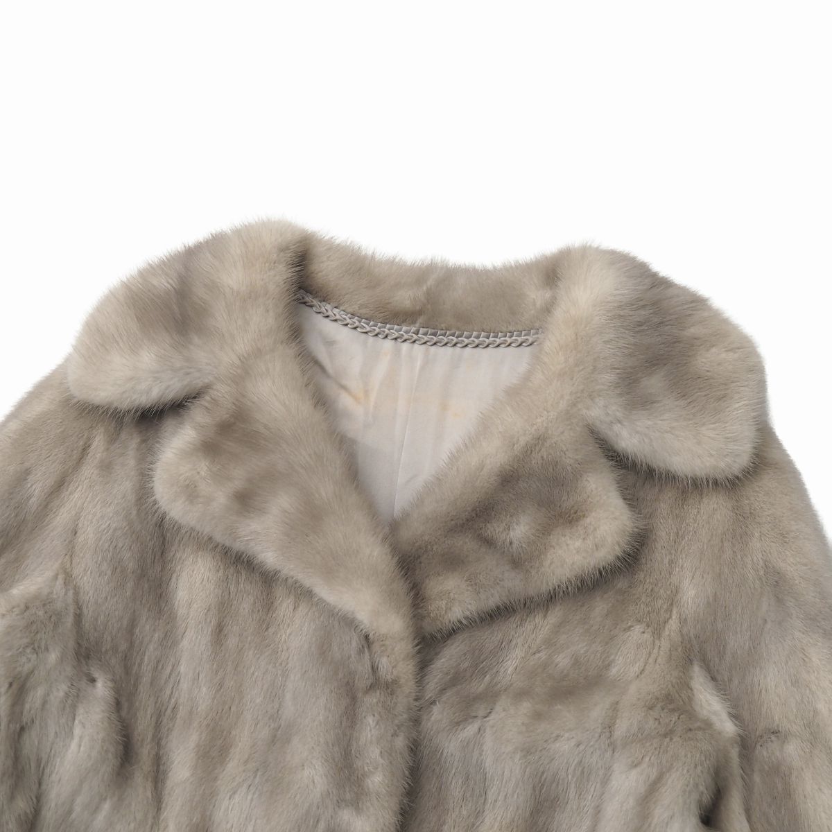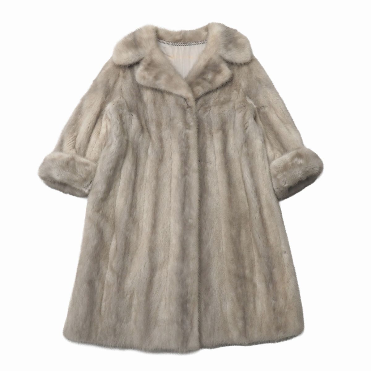 | GS5706◇サファイアミンク 逆毛衿 ファーコート ロング丈 袖口ロールアップ 毛皮コート M-L相当 着丈約98cm グレー系 | |||