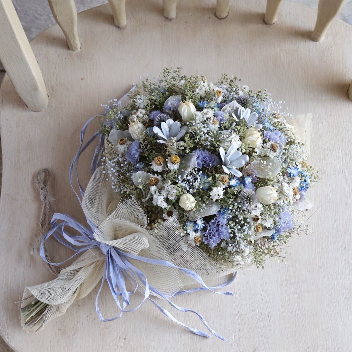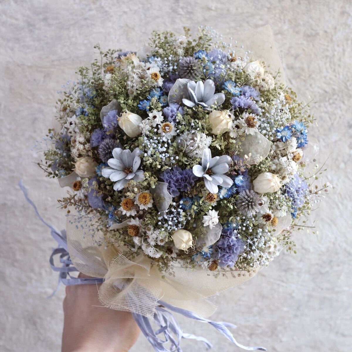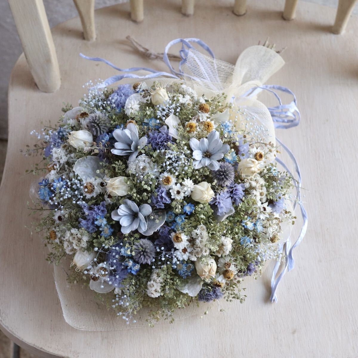 ※こちらのスワッグは他の作品と合計3点まで同梱可能です。同梱時は2点で送料+200円、3点で送料+400円になります。 ※他のサイトでも販売しておりますので、急に出品を取り消す場合がございます。 小さな丸い実が可愛いマメグンバイナズナをベースに、水色、アイボリー、ホワイトのお花をギュッと詰め込み、細かく作り込んだコロンとまあるいスワッグです。 ナチュラルなメッシュのラッピングペーパーでふんわり包んで水色のペーパーラフィアのリボンを合わせ優しい雰囲気にまとめました。 ドライフラワーをメインにハンドメイドフラワーとプリザーブドフラワーを組み合わせて作っております。長持ちする花材で作っておりますので、綺麗な状態で長く楽しんでいただけます。 麻紐のループが付いておりますのでフックやピンに掛けて飾っていただけます。 画像10枚目は梱包例です。 無料でリボン、メッセージカードもお付けできます。 使用花材 プチフラワー(ハンドメイドフラワー) かすみ草(プリザーブド) マメグンバイナズナ、スターチス、ヘリクリサム、ルリタマアザミ、ヤマハハコ、スターフラワー、ニゲラの実、ラフィアのリボン等 全体の長さ35cm 横幅23cm 持ち手とラッピングペーパーを除いたお花部分の長さ20cm 横幅23cm 厚み12cm ドライフラワーは自然のものですのでゆっくり退色していき、 徐々にベージュ系の色合いに変化します。 直射日光を避け、できるだけ湿度の高い場所を避けて飾っていただければ綺麗に長持ちいたします。 ※商品の性質上、輸送中のわずかな実や葉落ちはご容赦ください。 |