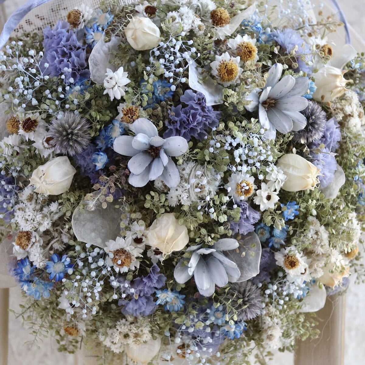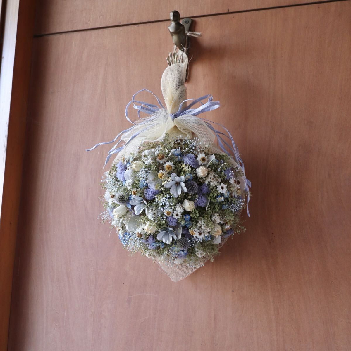 | ■ ■ 商品名: 「(40cm) *kashun*ハンドメイド 淡いブルーのお花畑スワッグ/水色/ドライフラワー/ブーケ/花束/リース/誕生日プレゼント/贈り物/ギフト」 ■ ■ |