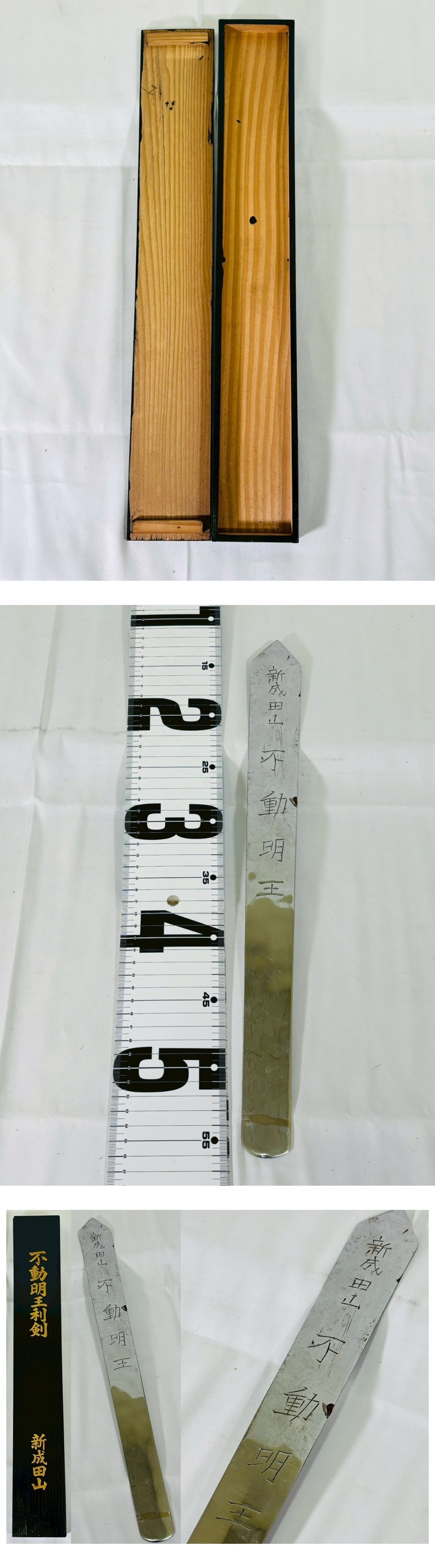 ●【不動明王剣】新成田山 鉄製 利剣 仏教美術 厄除け 刀剣 古物 仏具 寺院 時代物 鉄刀 銘 密教法具 武具 装飾品 骨董 希少 蔵出 ■本体サイズ:横幅 4.5cm/縦幅 44cm ※素人寸法の為、若干の誤差はご了承ください。 ■状態につきましては経年に伴うスレ・汚れ・小キズ などが見られます。 ※その他の細かな状態は写真にてご確認・ご了承の上 ご入札くださいませ。 ●こちらの商品などは時代物や古いお品・骨董品となり ますので、細かな状態を気にされる方・神経質な方の ご入札はご遠慮くださいませ。 |