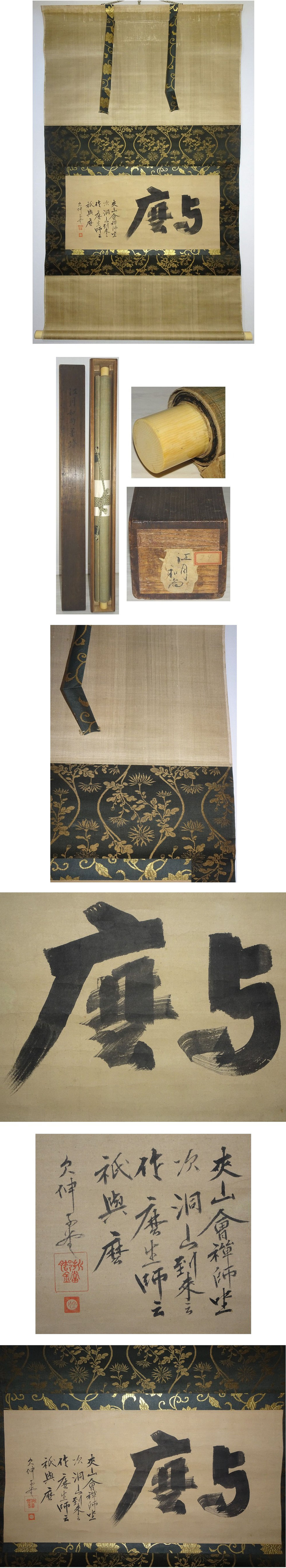 紙本 軸 真筆保証(真作) 裂三段表装風帯つき(一文字風帯金襴) ウブ幅 桐箱入 中身寸法27.5×58 状態良好 幅自体しっかりしています よろしくお願い致します